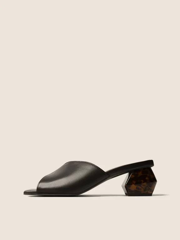 Minimalist smooth leather closed-toe mules