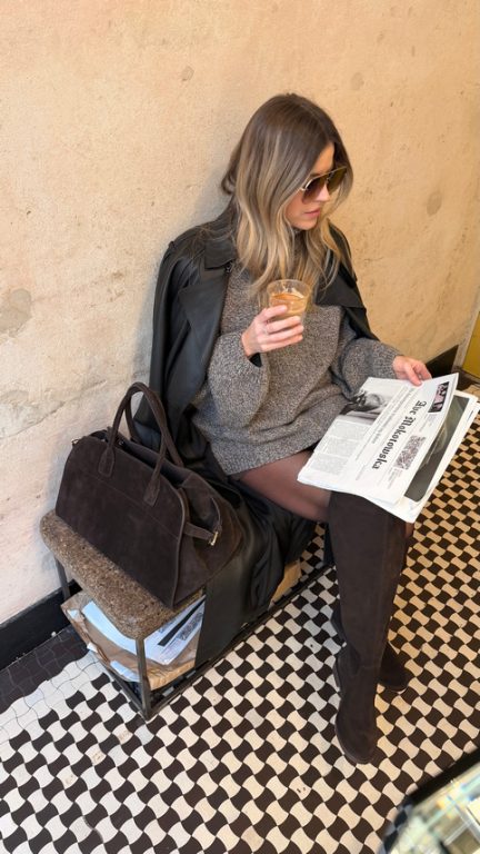 Kinga on a tropical getaway with her L37 basket bag