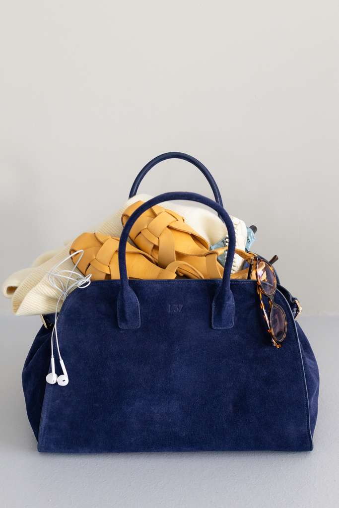 DETAILS THAT DEFINE STYLE: Subtle stitching, brass hardware in a vintage shade, and precise finishes emphasize the artisanal character of the brand.