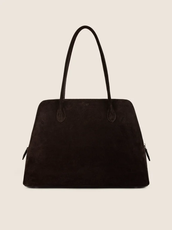 BRĄZOWA TOREBKA WYKONANA ZE SKÓRY NATURALNEJ I ZAMSZU