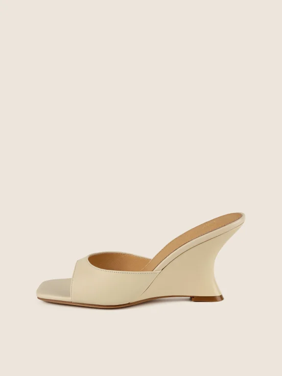 BEIGE WEDGE MULES - ARCHITECTURAL FORM AND SUMMER CHIC
