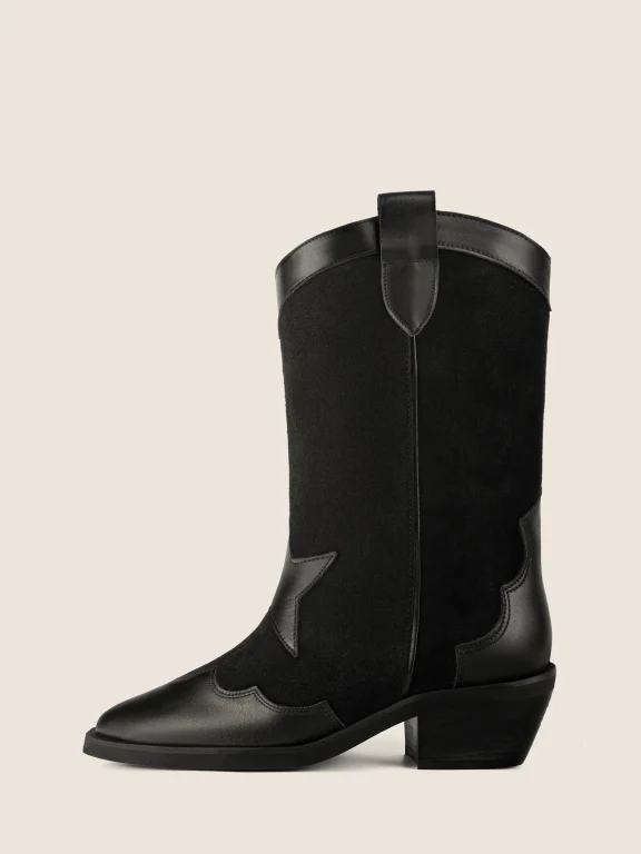 Full-of-character black boots made of pebbled and smooth leather