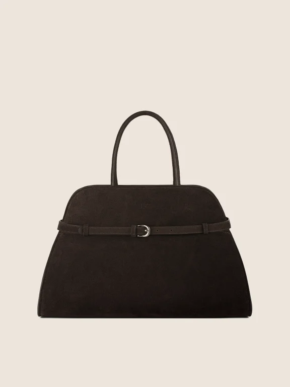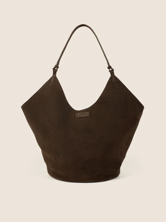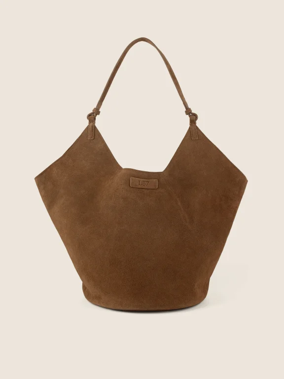BRĄZOWA TOREBKA WYKONANA ZE SKÓRY NATURALNEJ I ZAMSZU