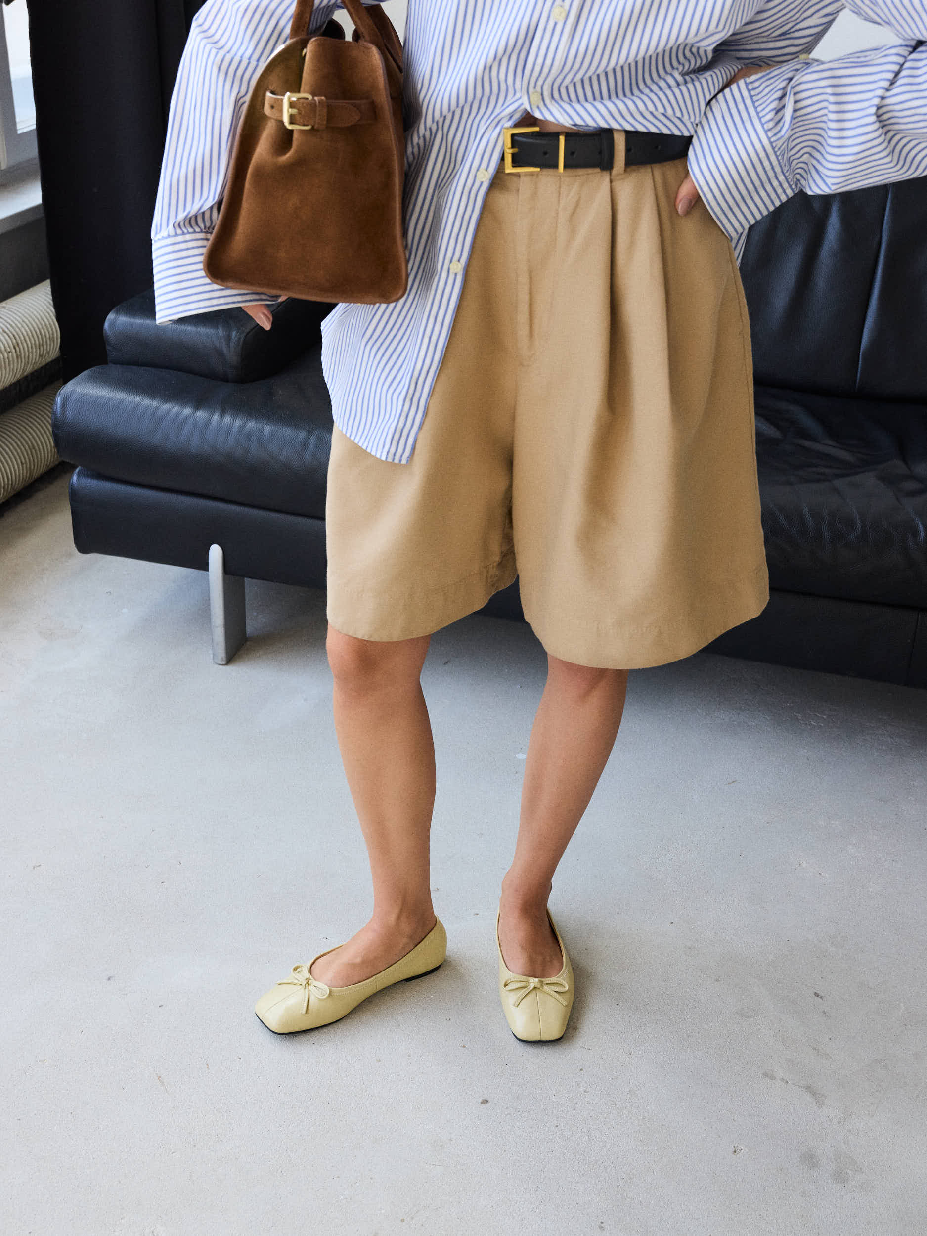 Subtle light yellow soft leather ballerinas with a bow detail