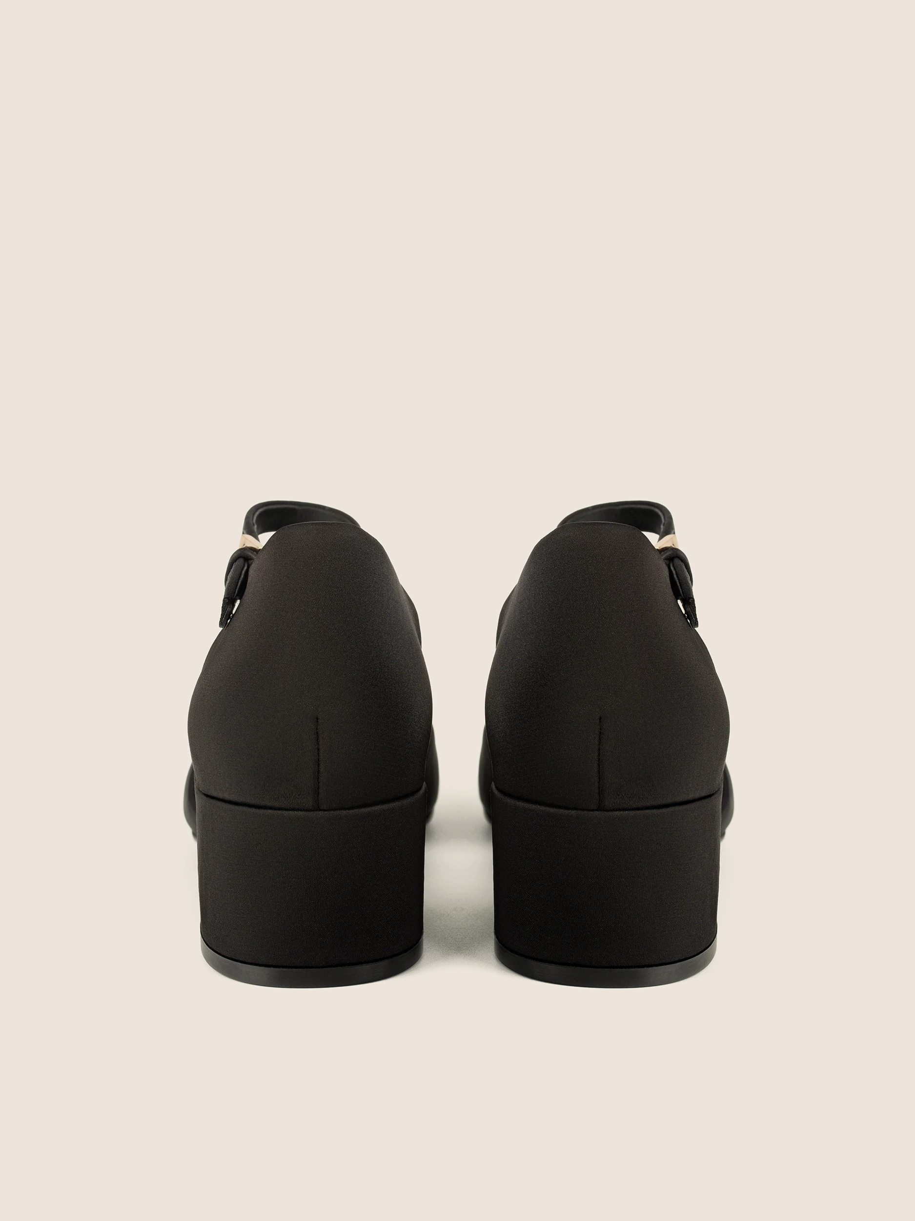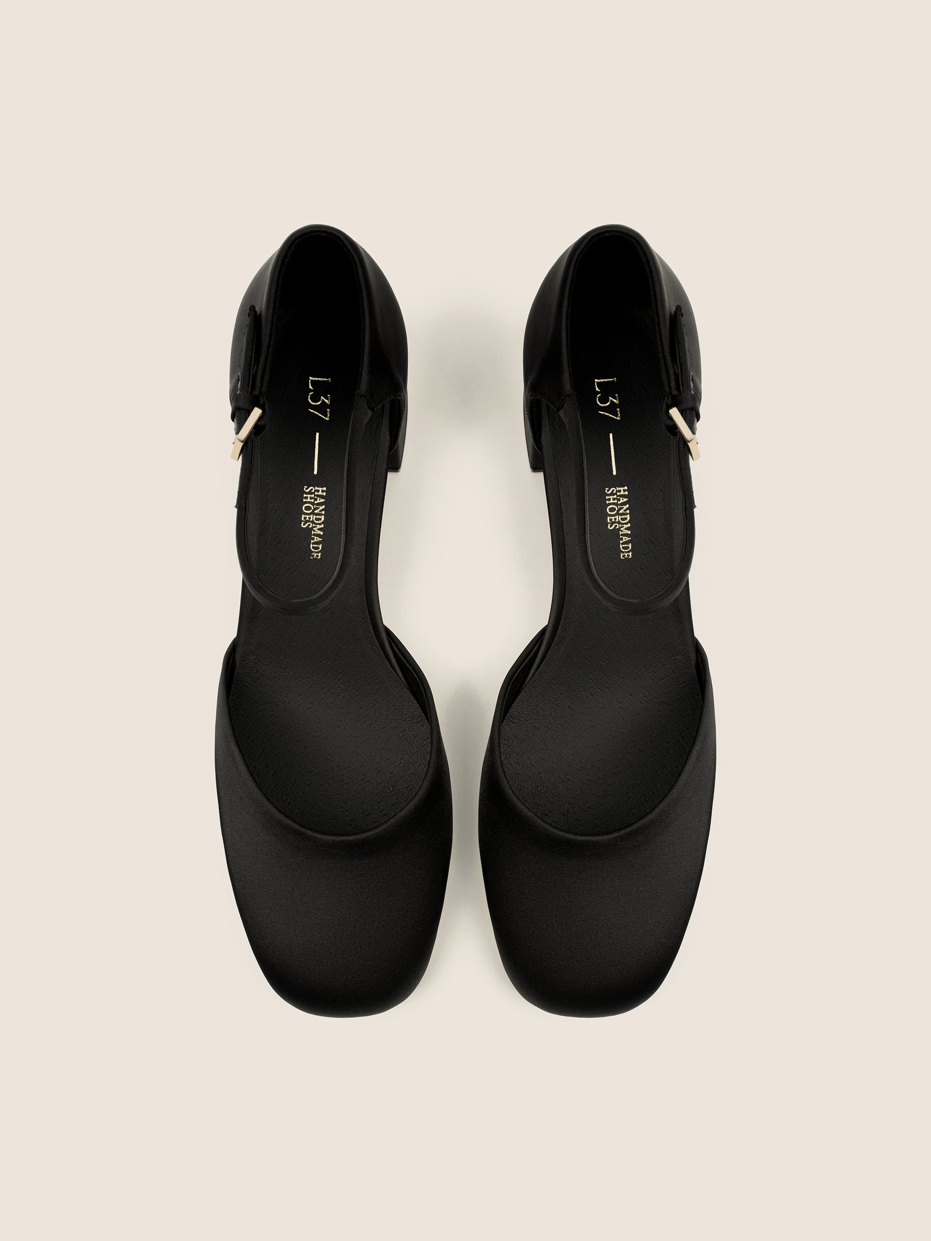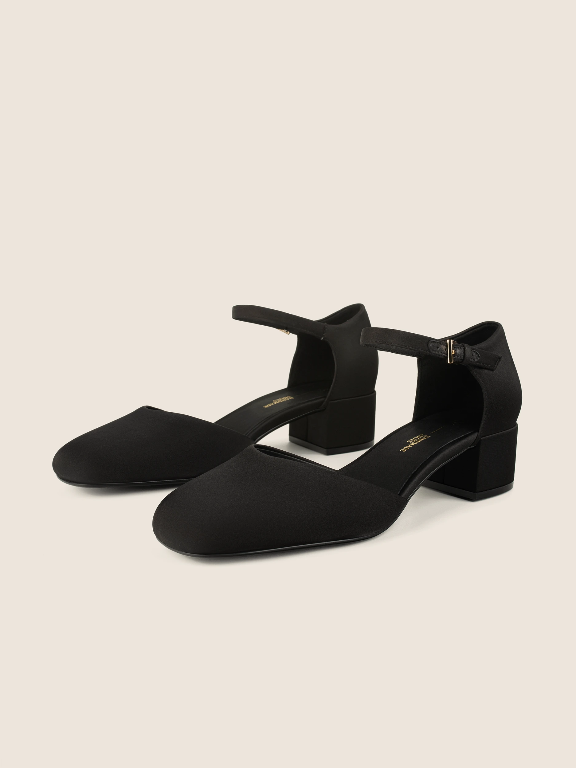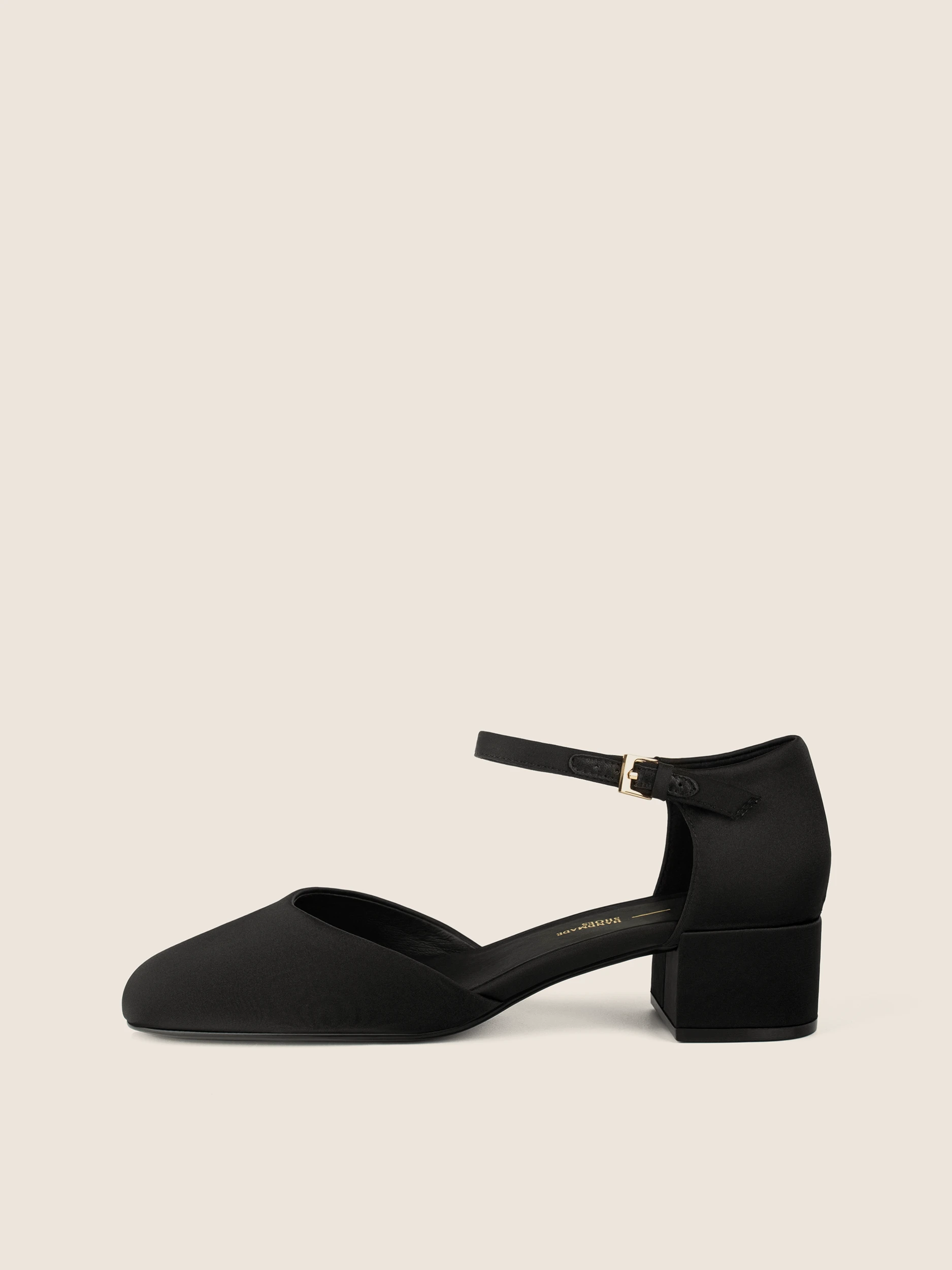 BLACK SATIN LOW-HEEL SANDALS