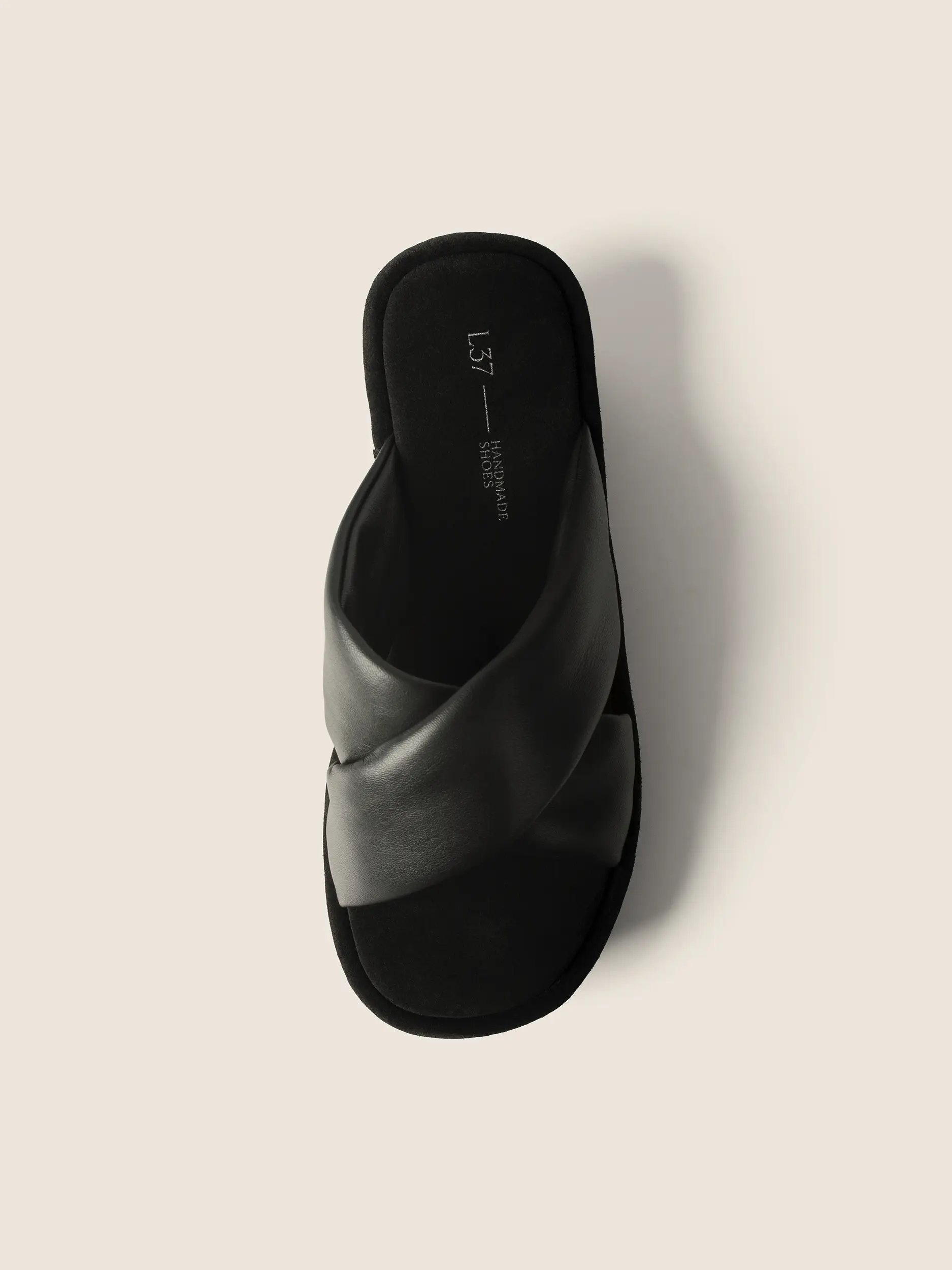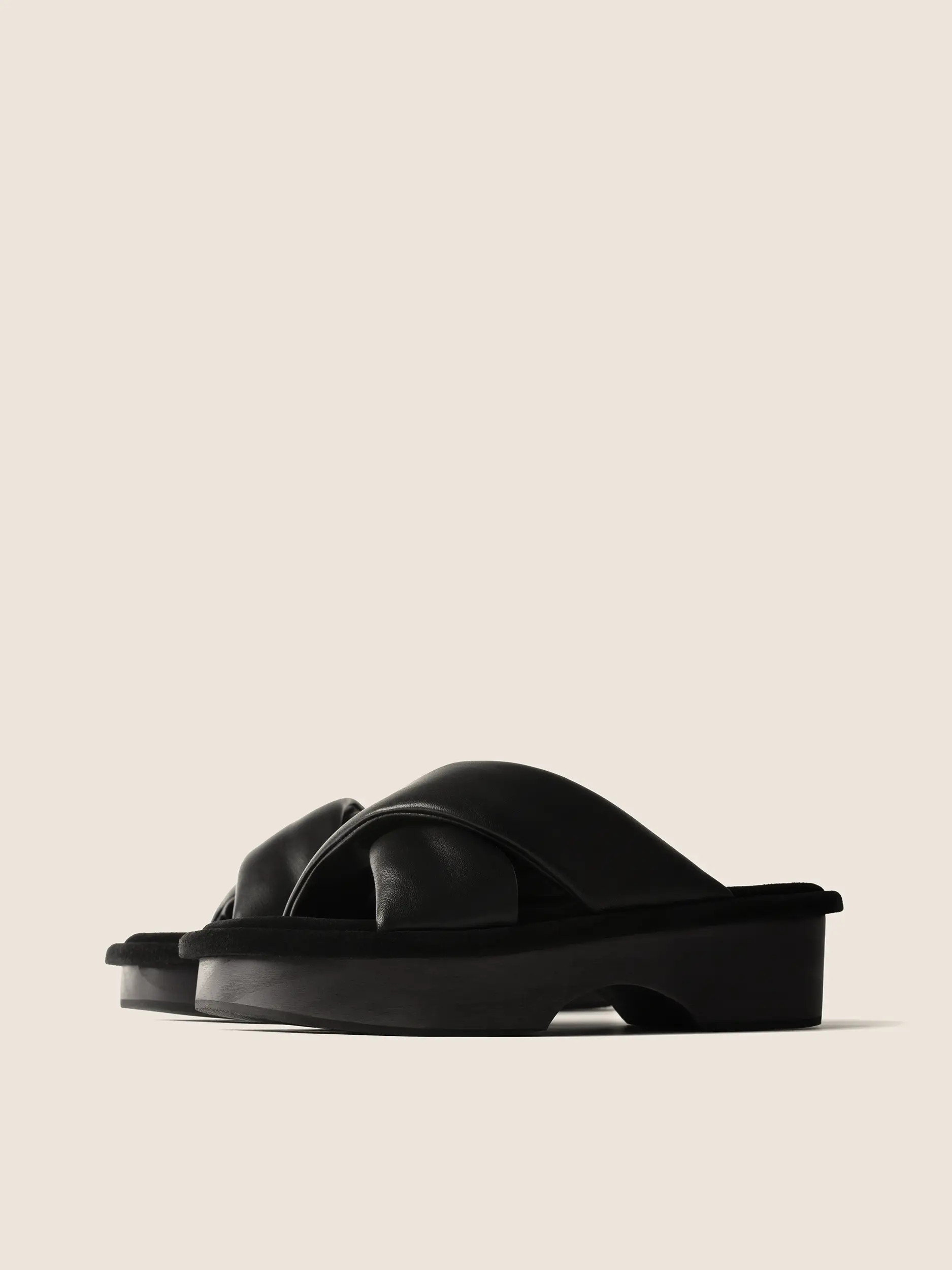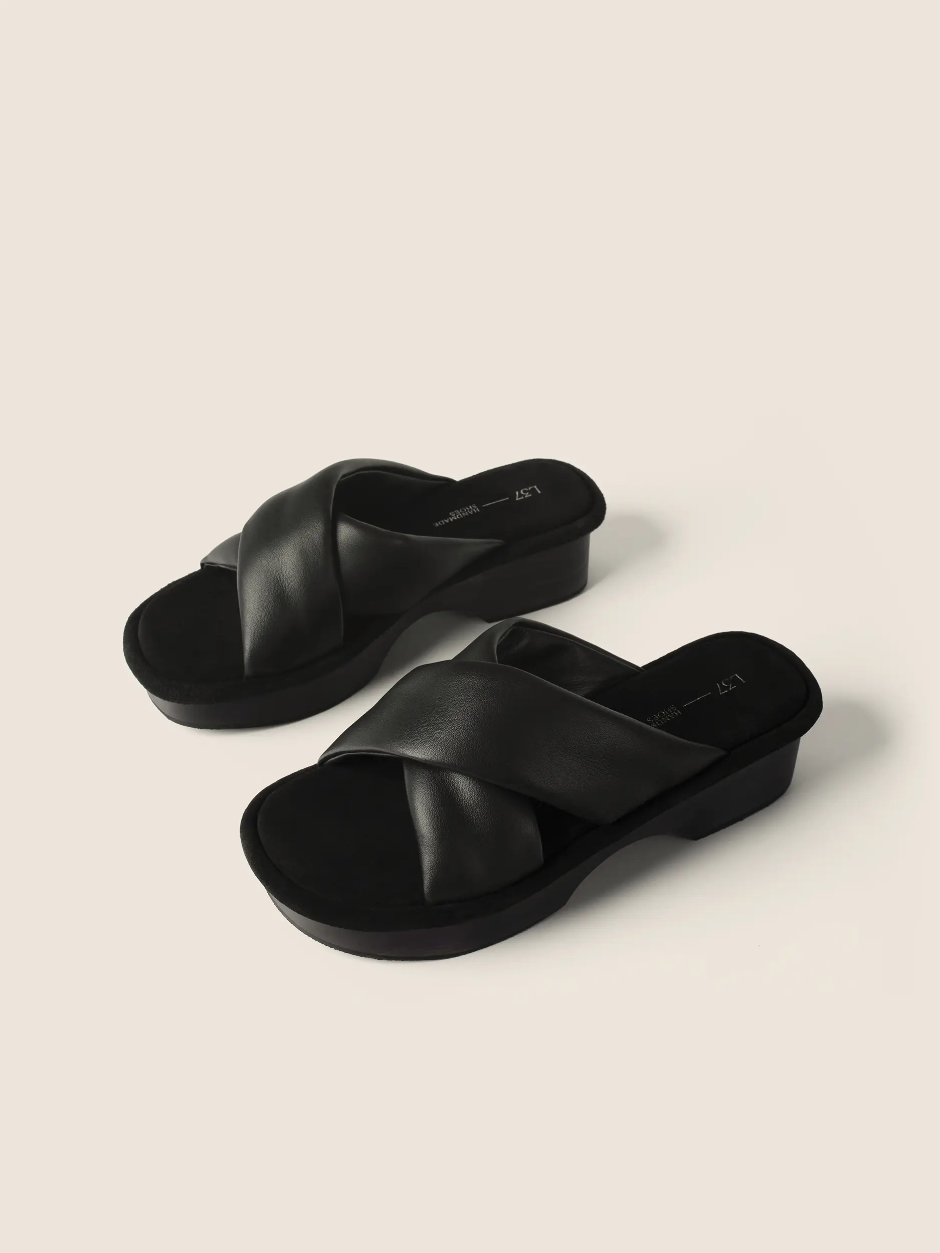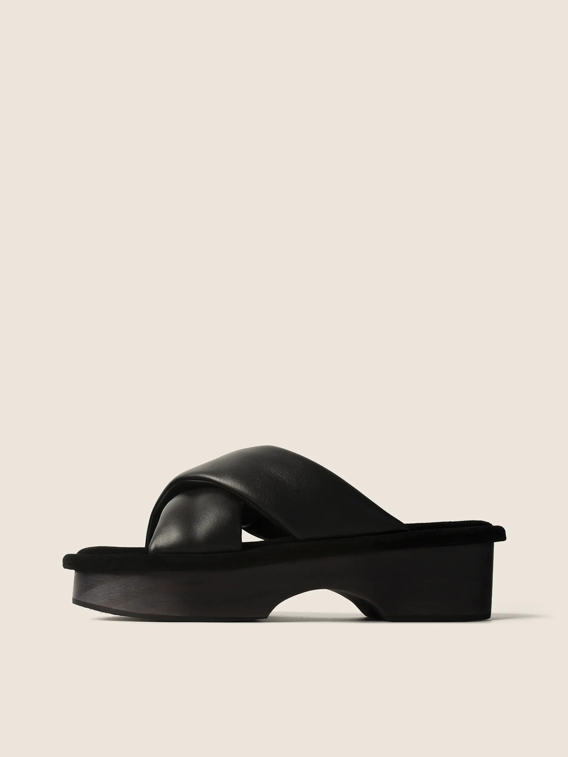 Leather platform slides with crossover straps