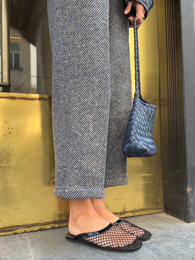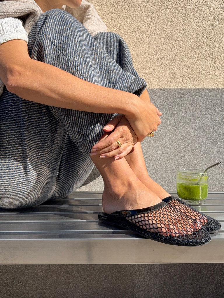 BLACK OPENWORK MESH MULES WITH BREATHABLE FINISH