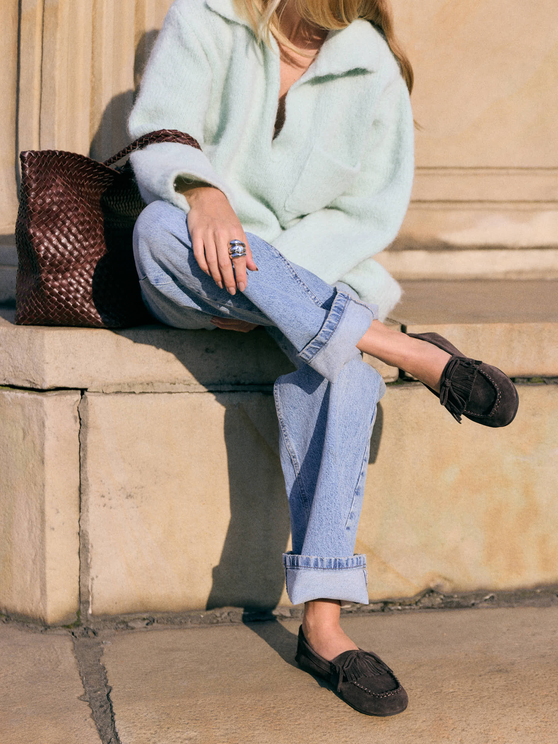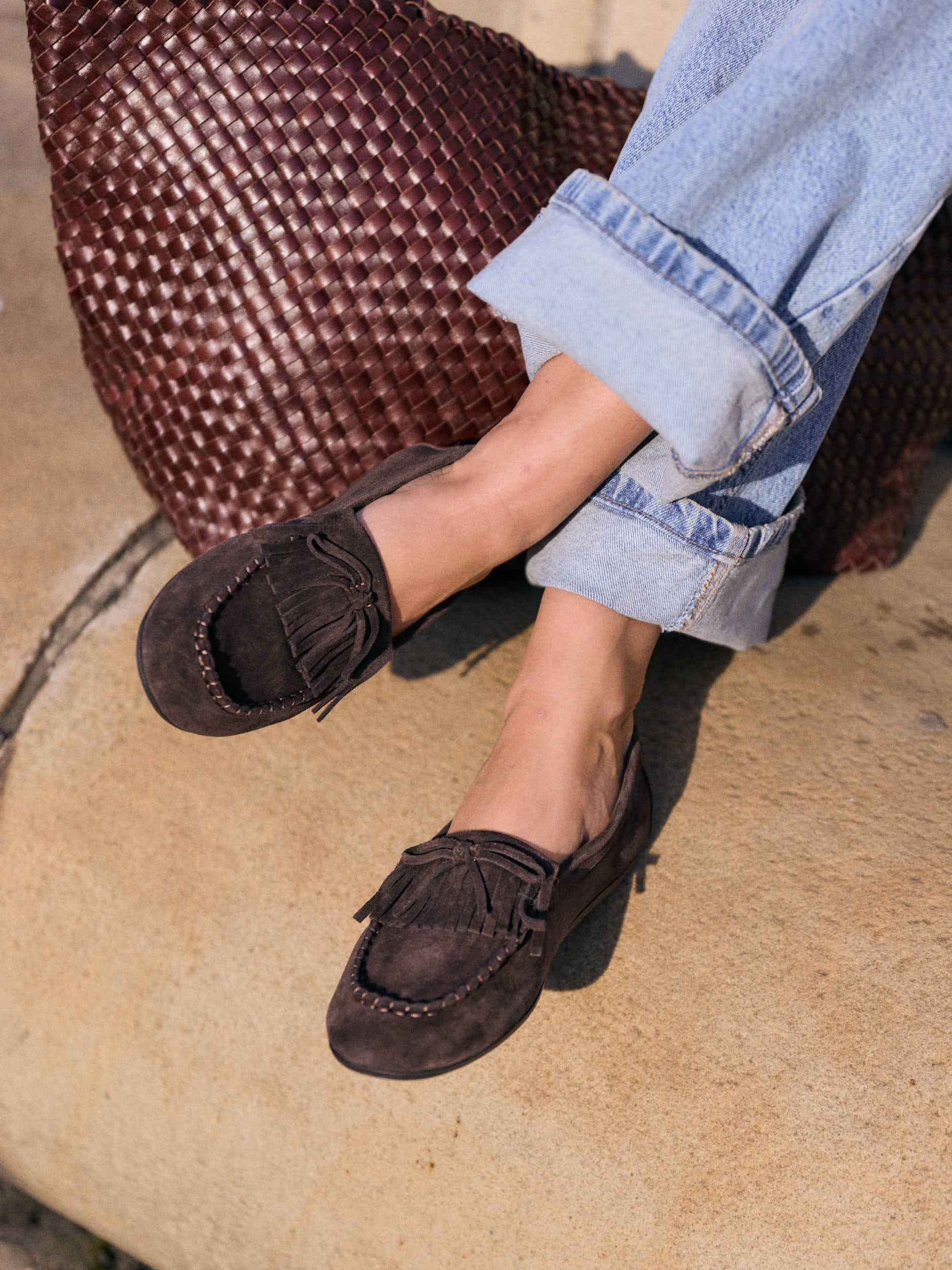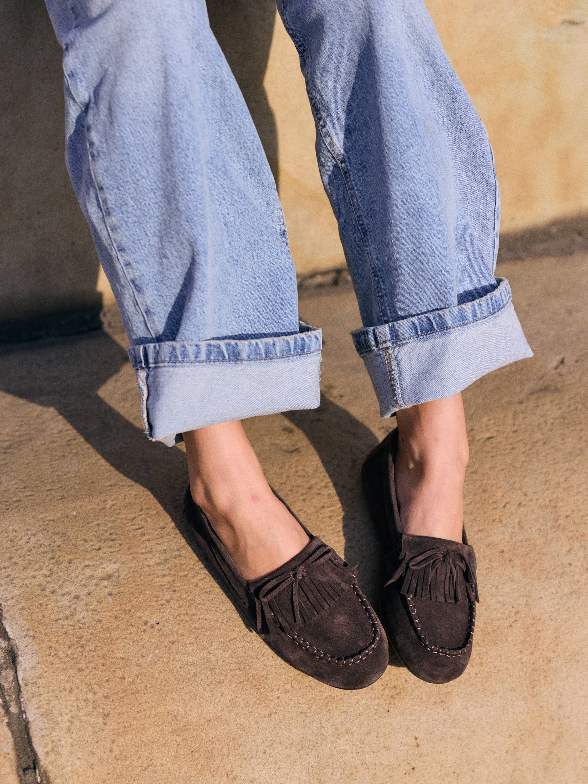 Stylish dark brown suede loafers with classic fringe details