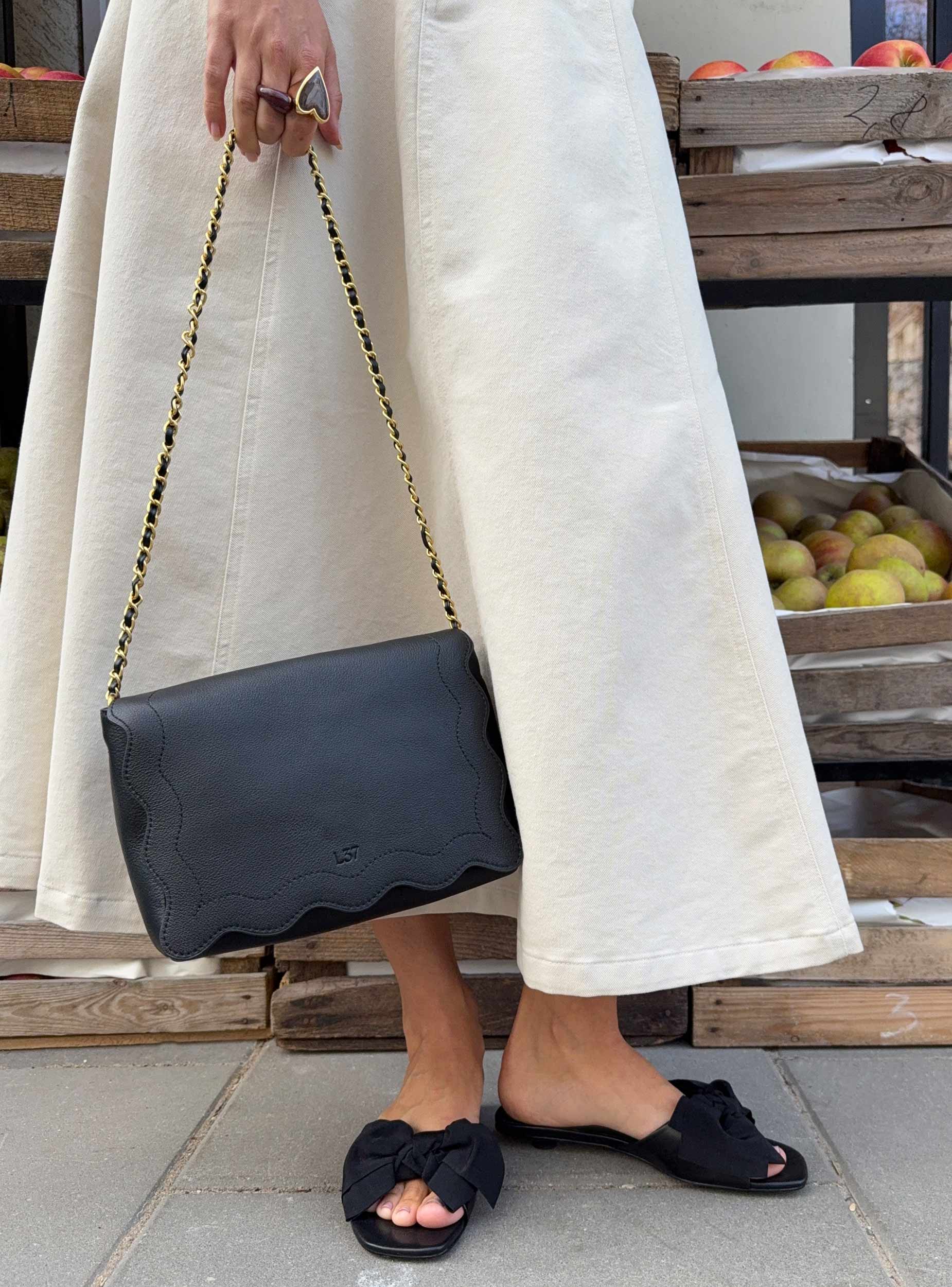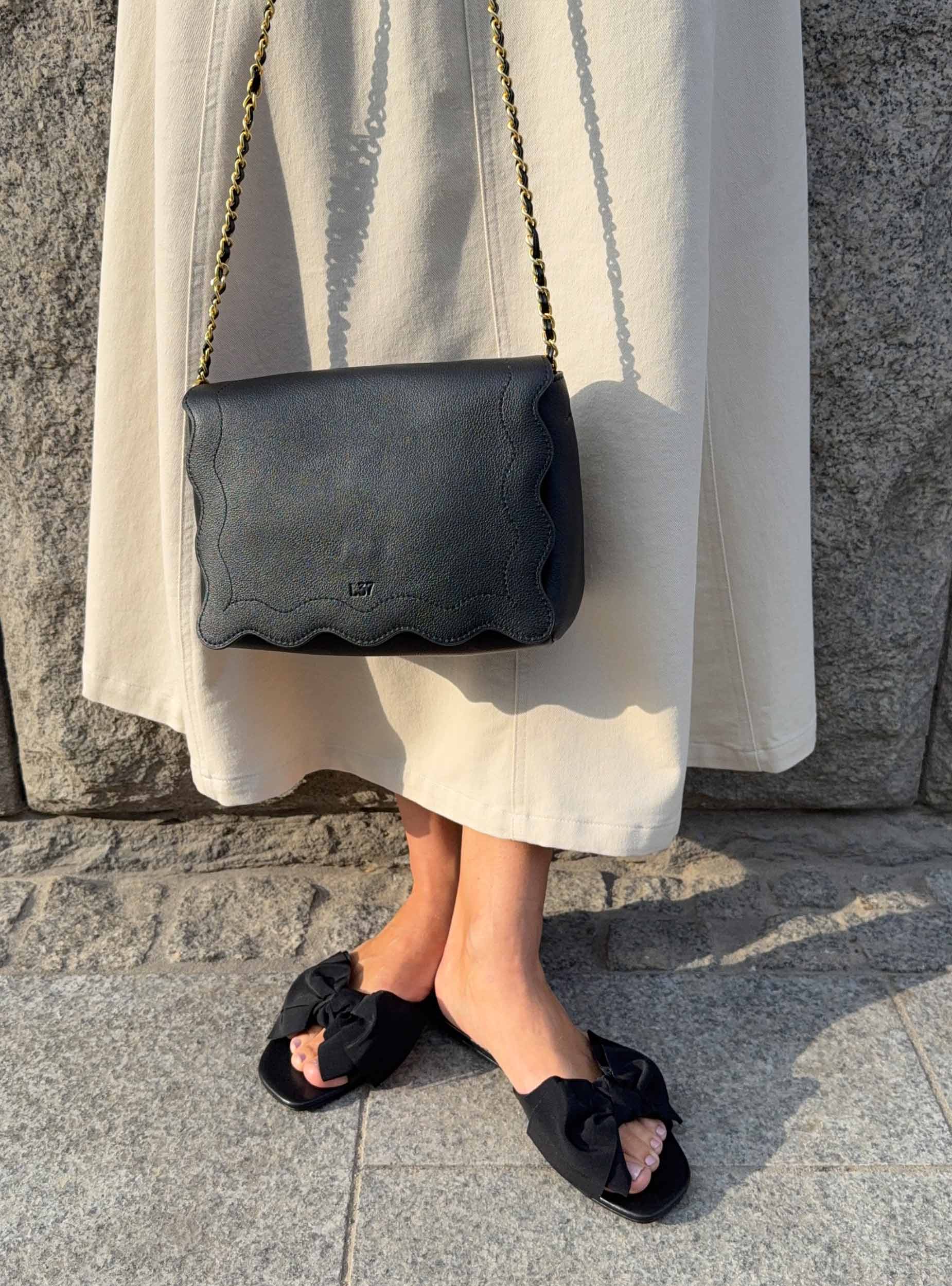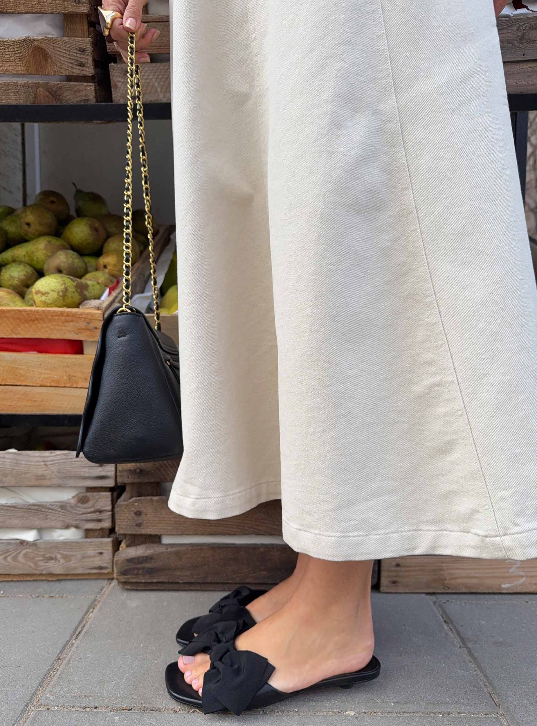 ELEGANT BLACK SLIDES WITH A DECORATIVE BOW