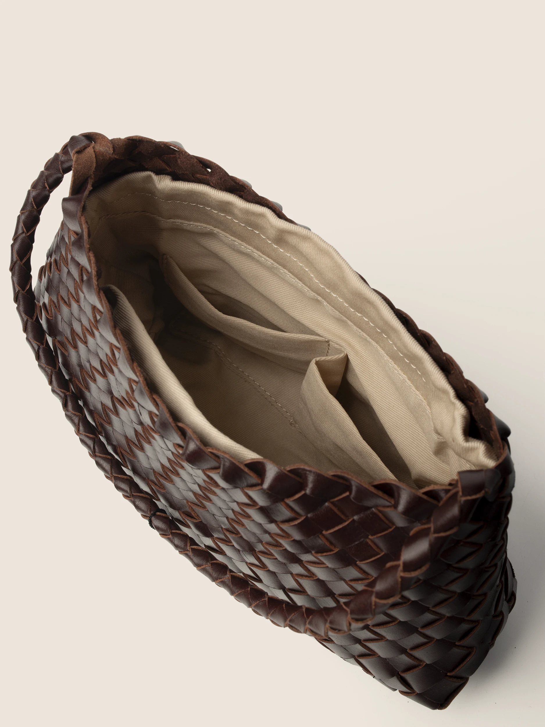 BROWN MINI WOVEN HANDBAG