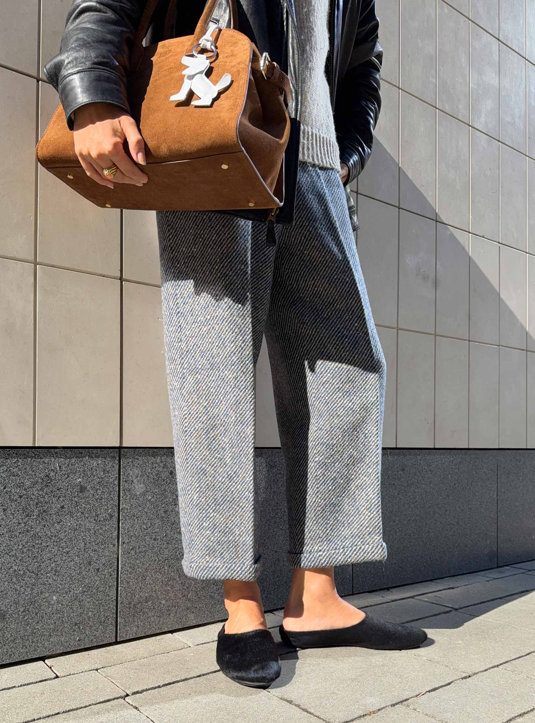 Minimalistyczne mules ze skóry z włosiem
