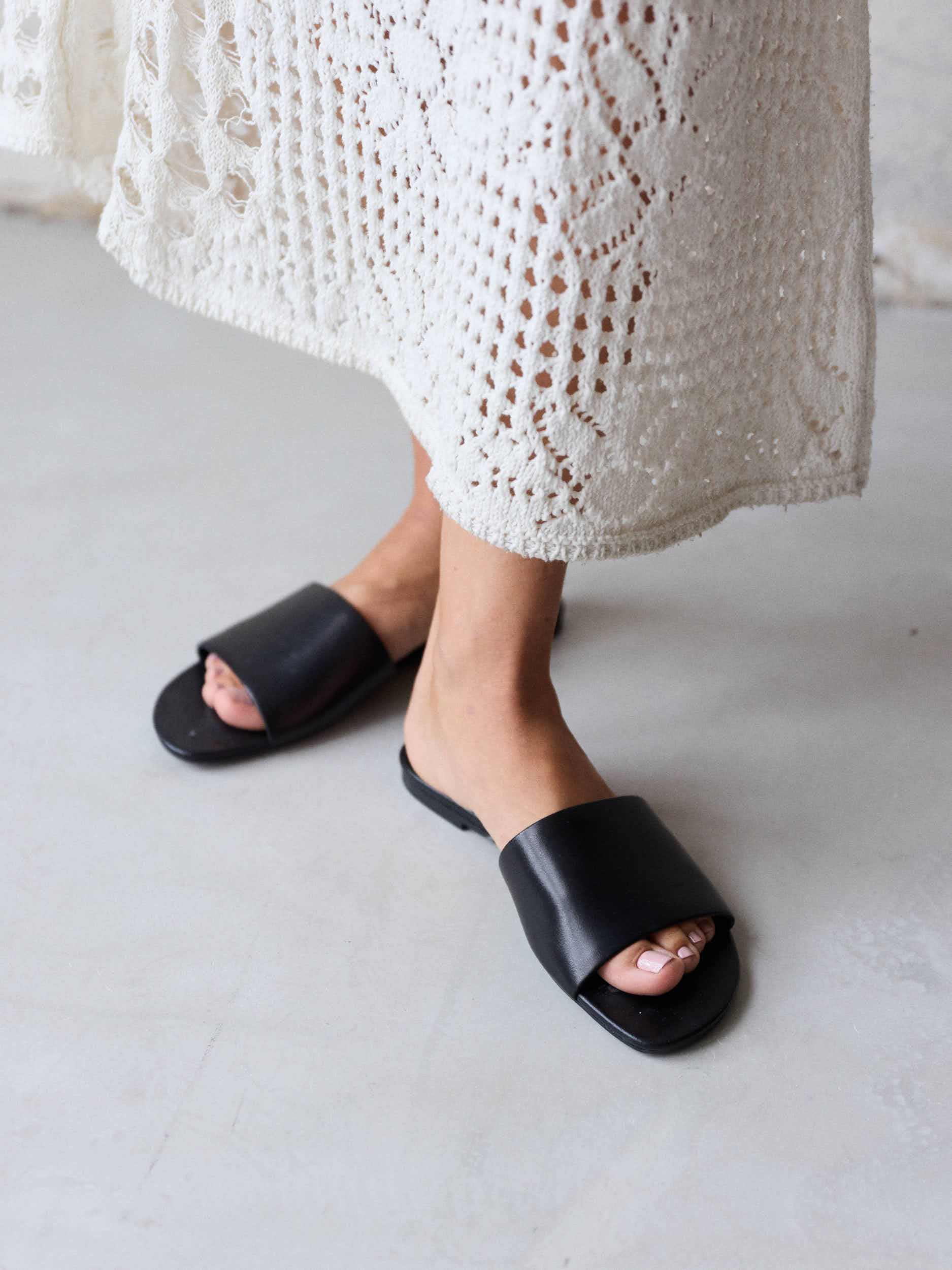 CZARNE SKÓRZANE KLAPKI Z SZEROKIM PASKIEM