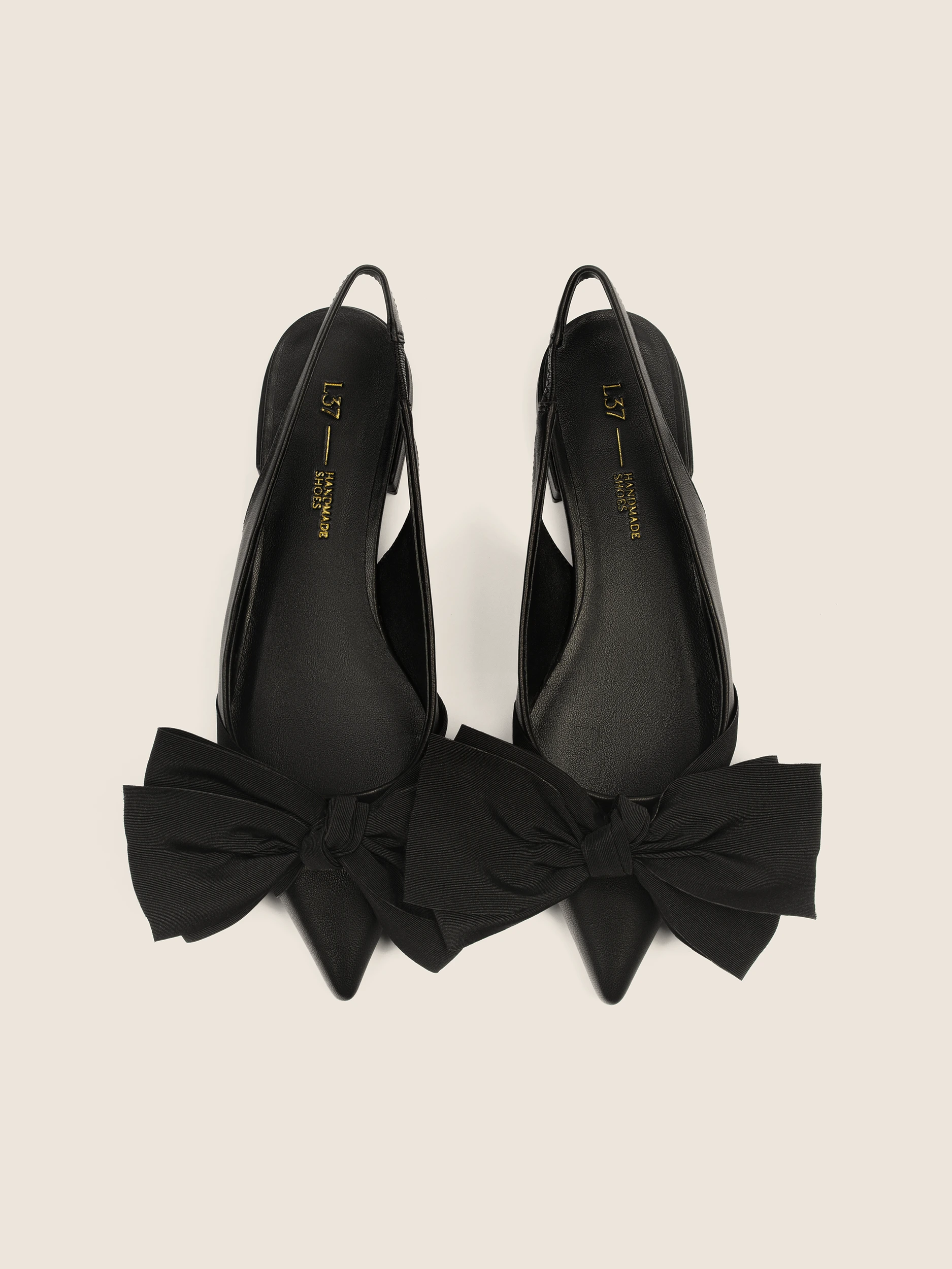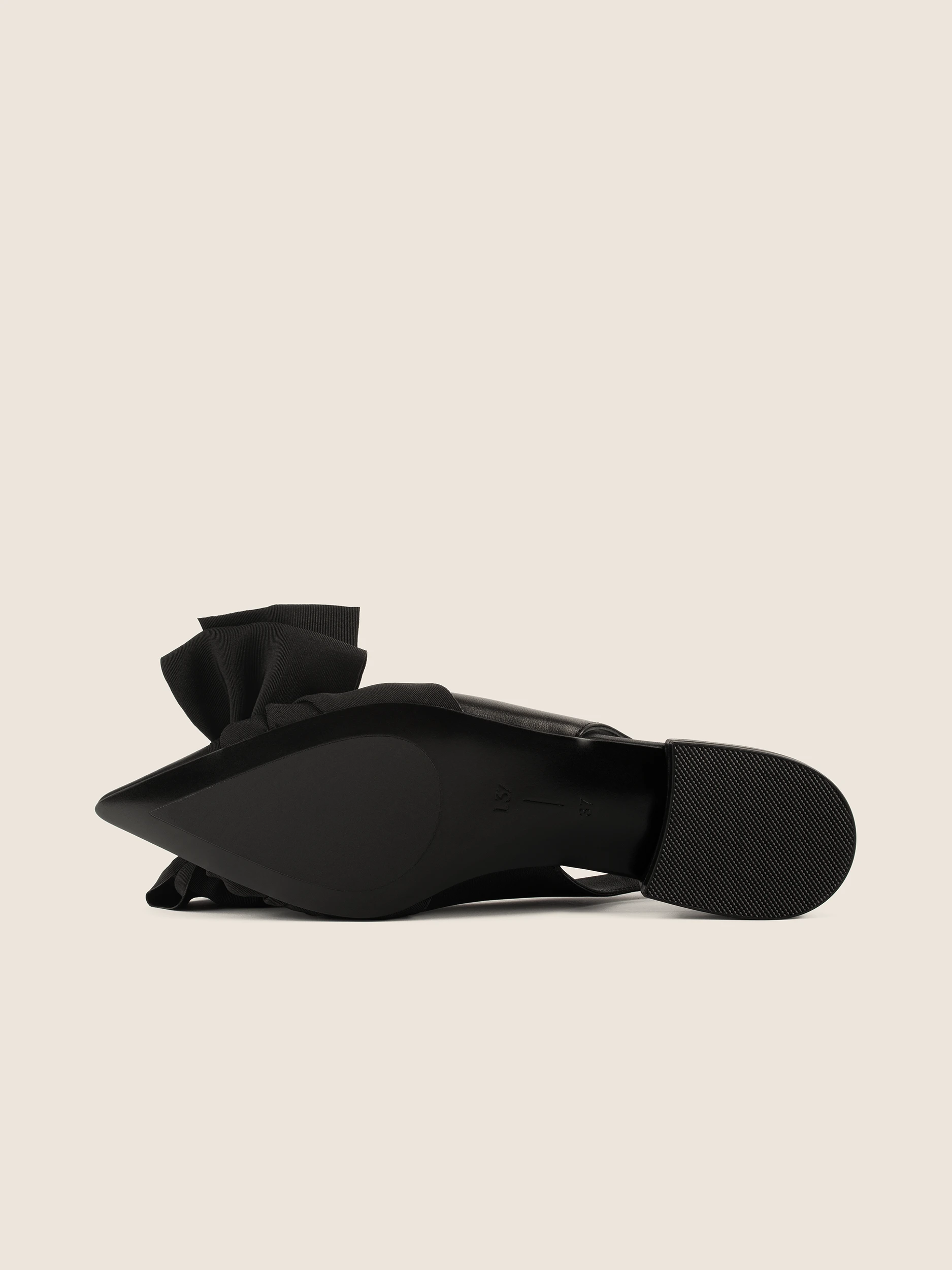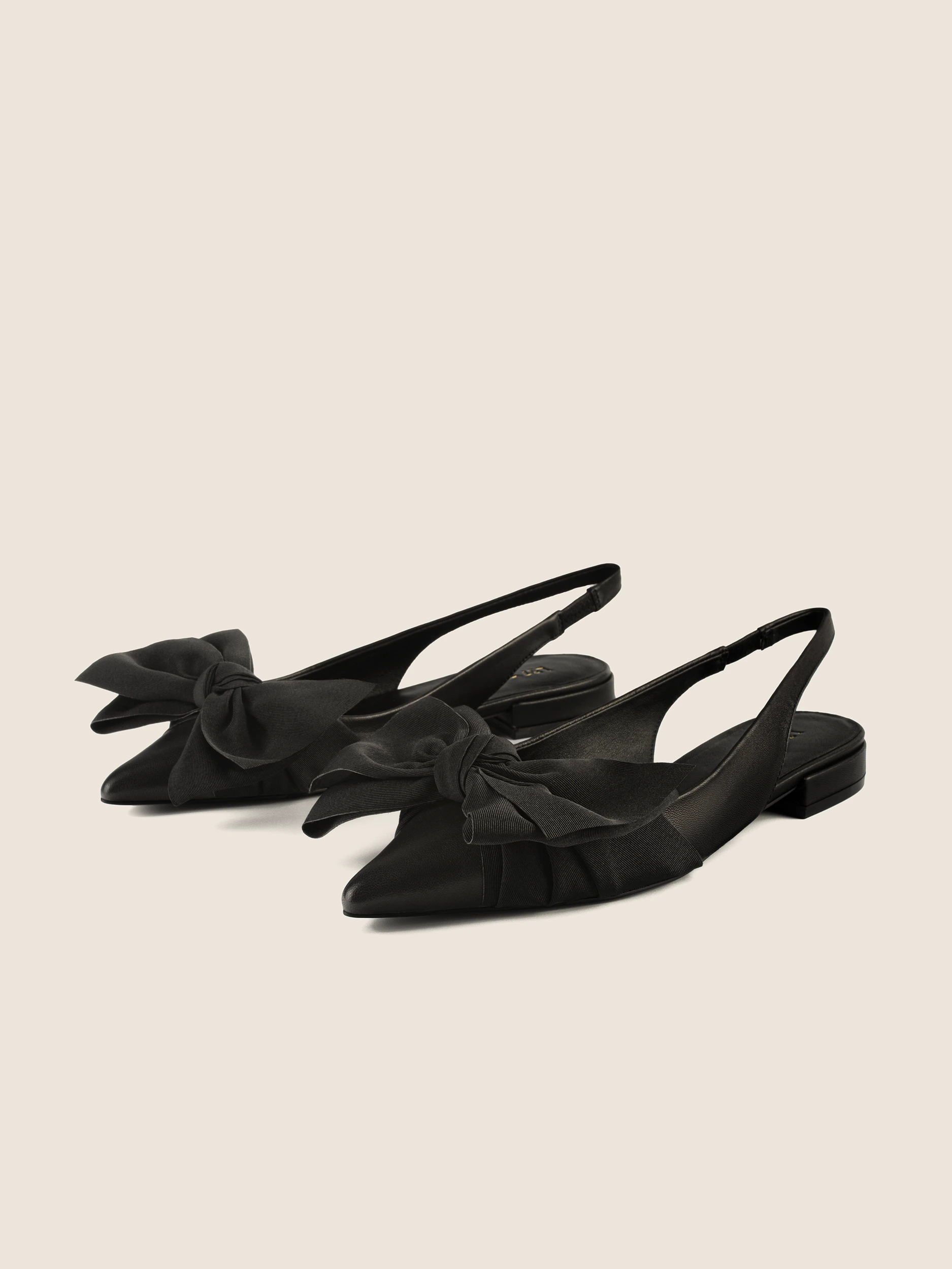CZARNE BALERINY Z ODKRYTĄ PIĘTĄ I EFEKTOWNĄ KOKARDĄ