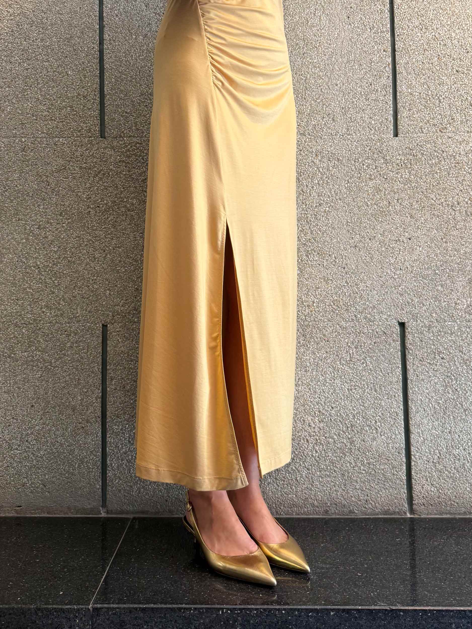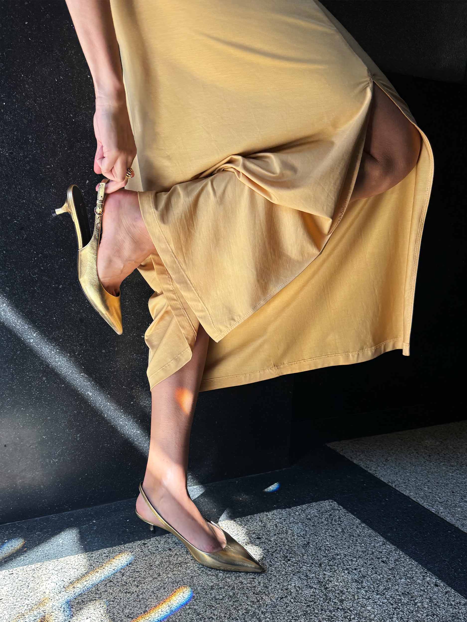 ZŁOTE CZÓŁENKA SLINGBACK NA KACZUSZCE - WYRAFINOWANY BLASK W STYLU RETRO