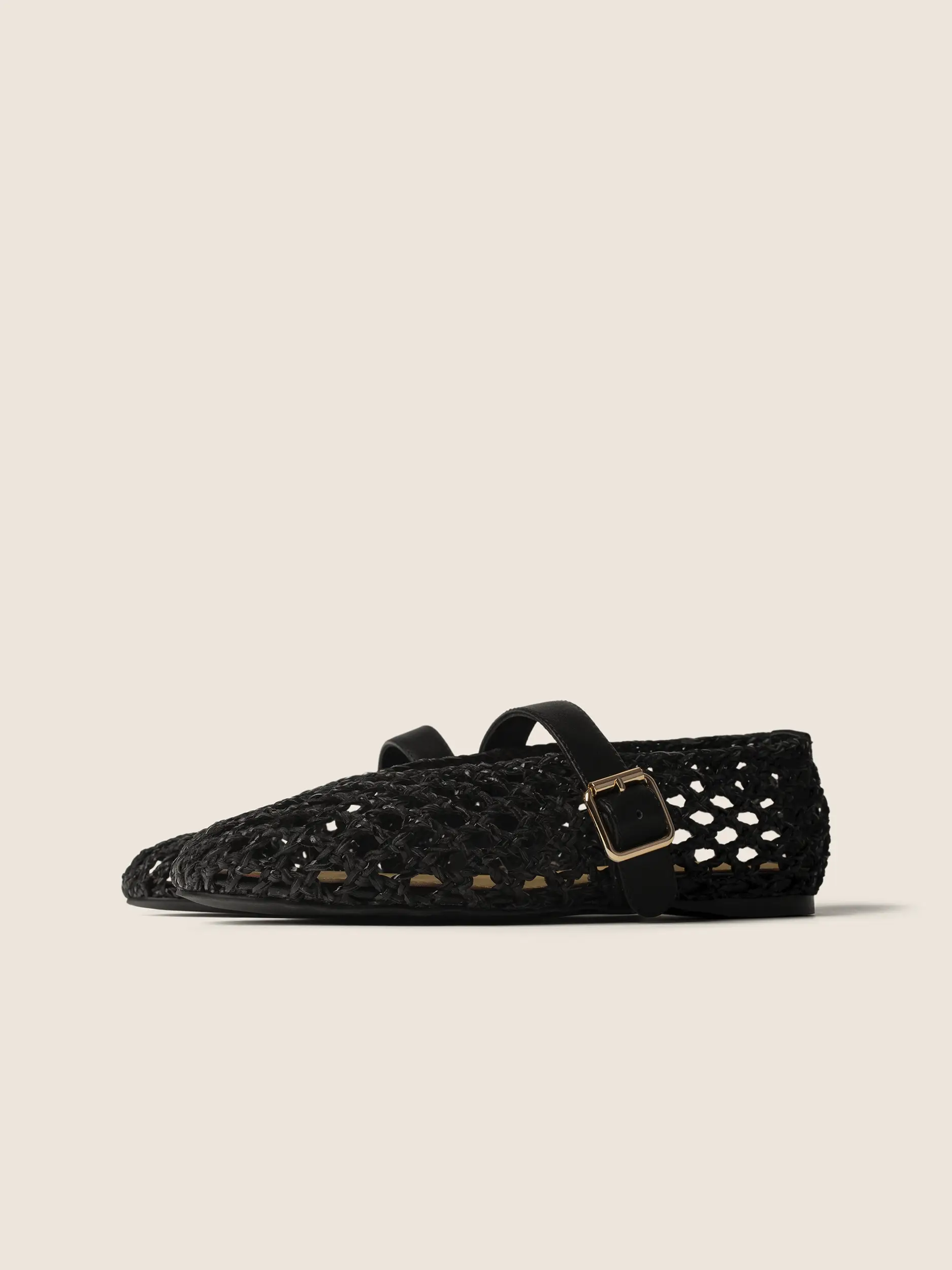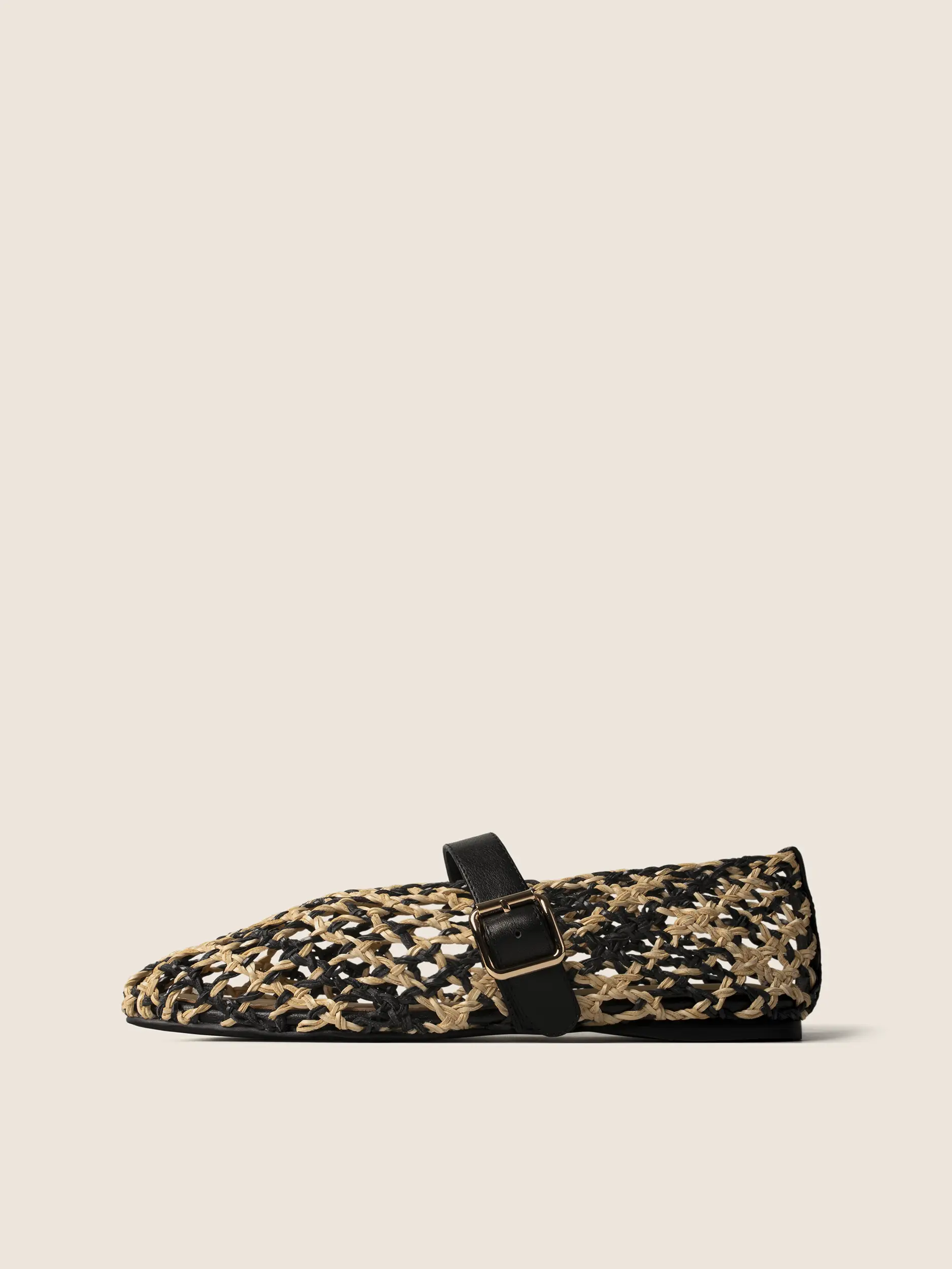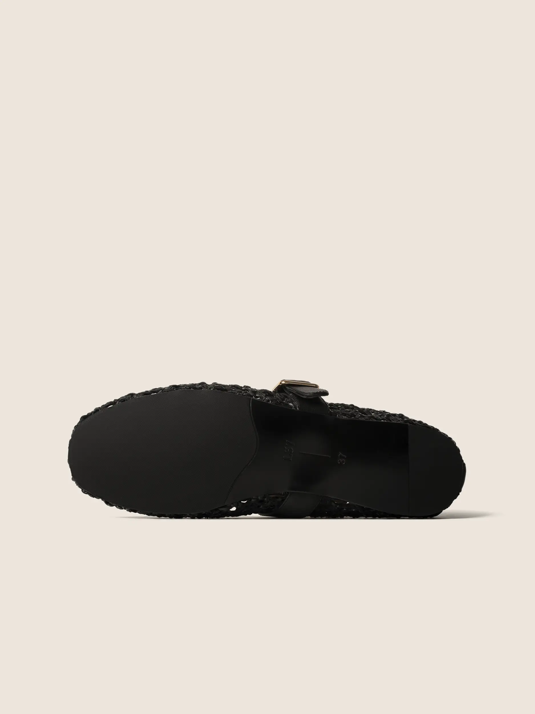 Fason nawiązuje do klasycznych butów typu Mary Jane. Charakterystyczny skórzany pasek z elegancką, złotą klamrą nie tylko stabilizuje stopę, ale stanowi luksusowy, biżuteryjny akcent. To doskonała, przewiewna alternatywa dla tradycyjnego obuwia, łącząca tradycyjne rzemiosło z najgorętszymi trendami sezonu.