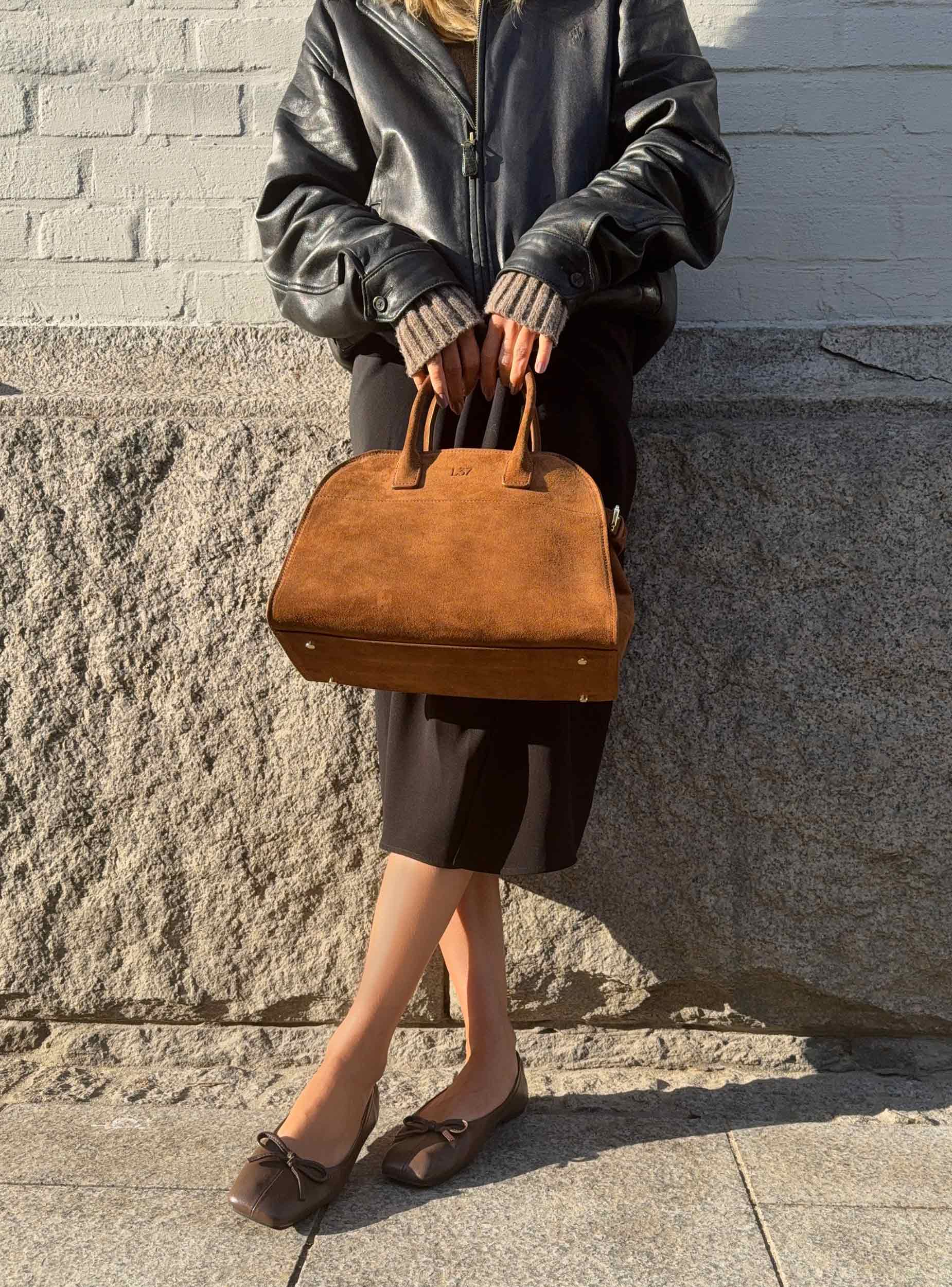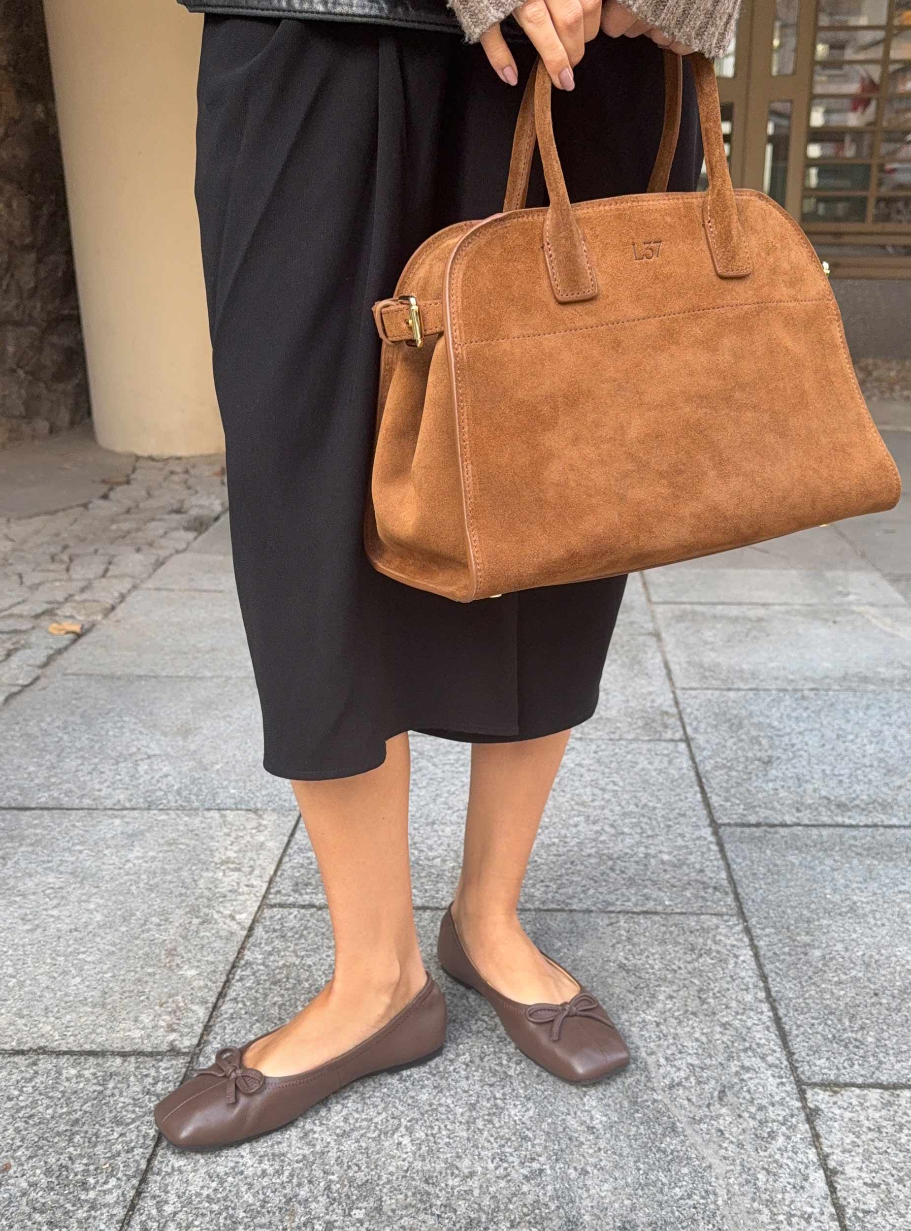 brązowe baleriny z kokardką i kwadratowym czubkiem
