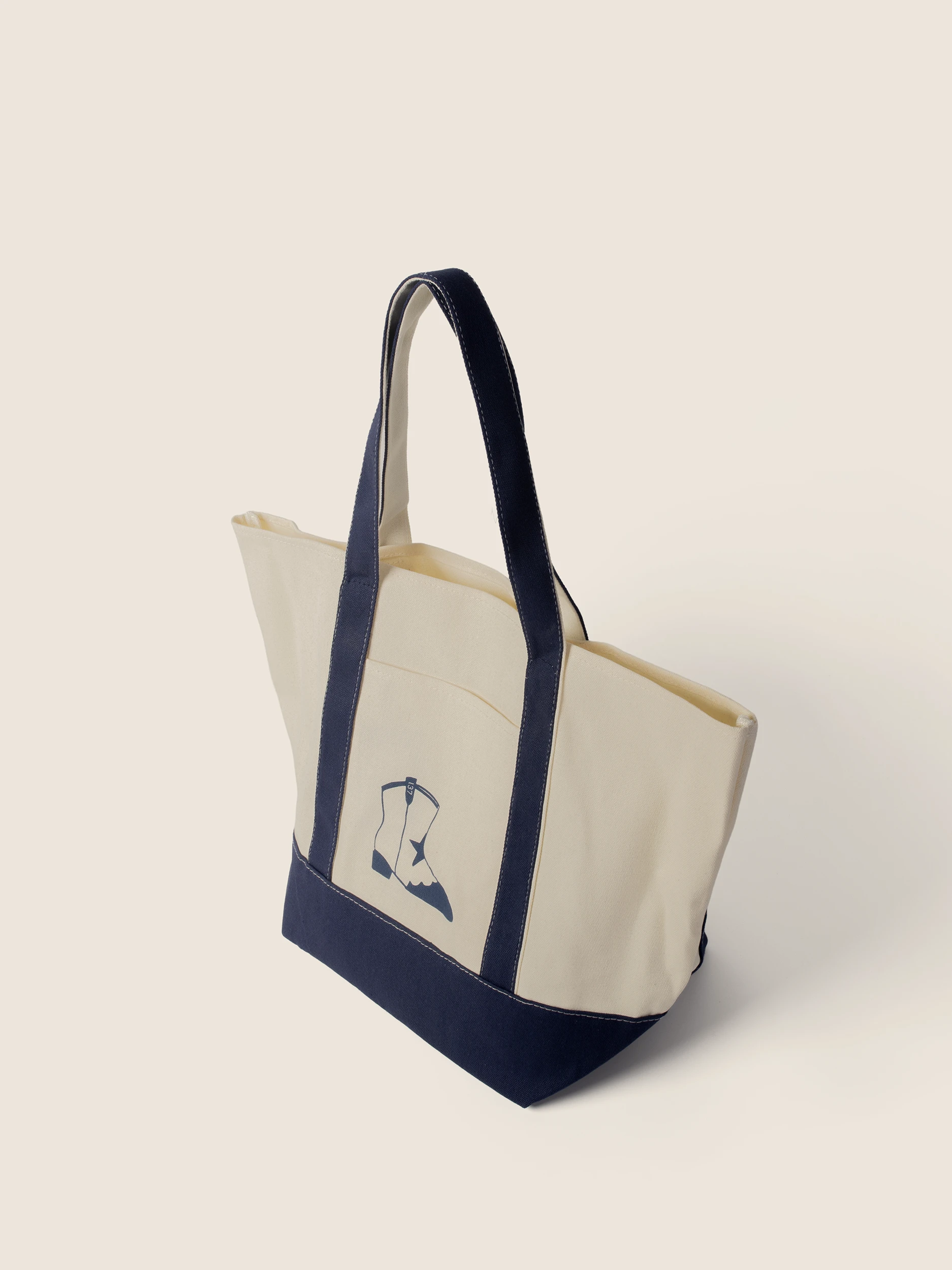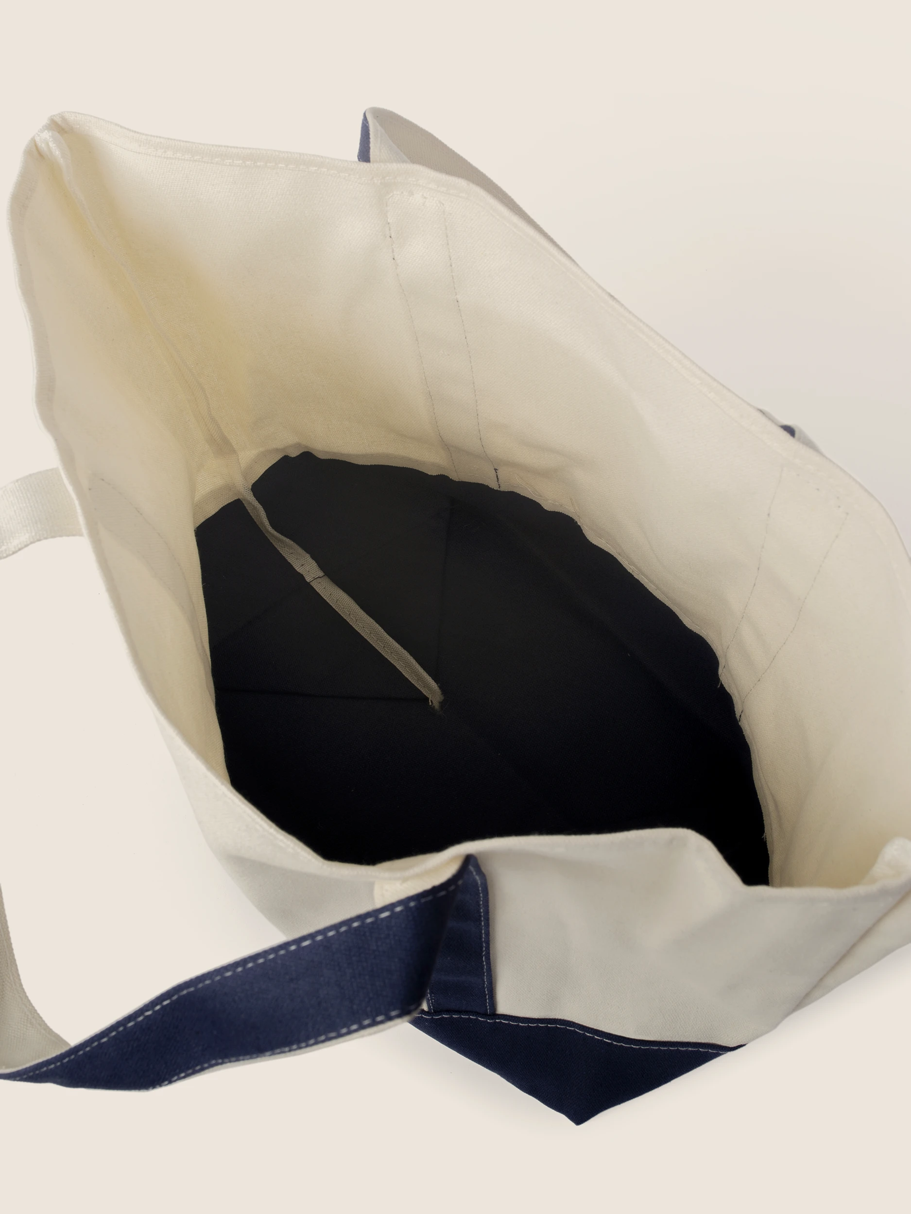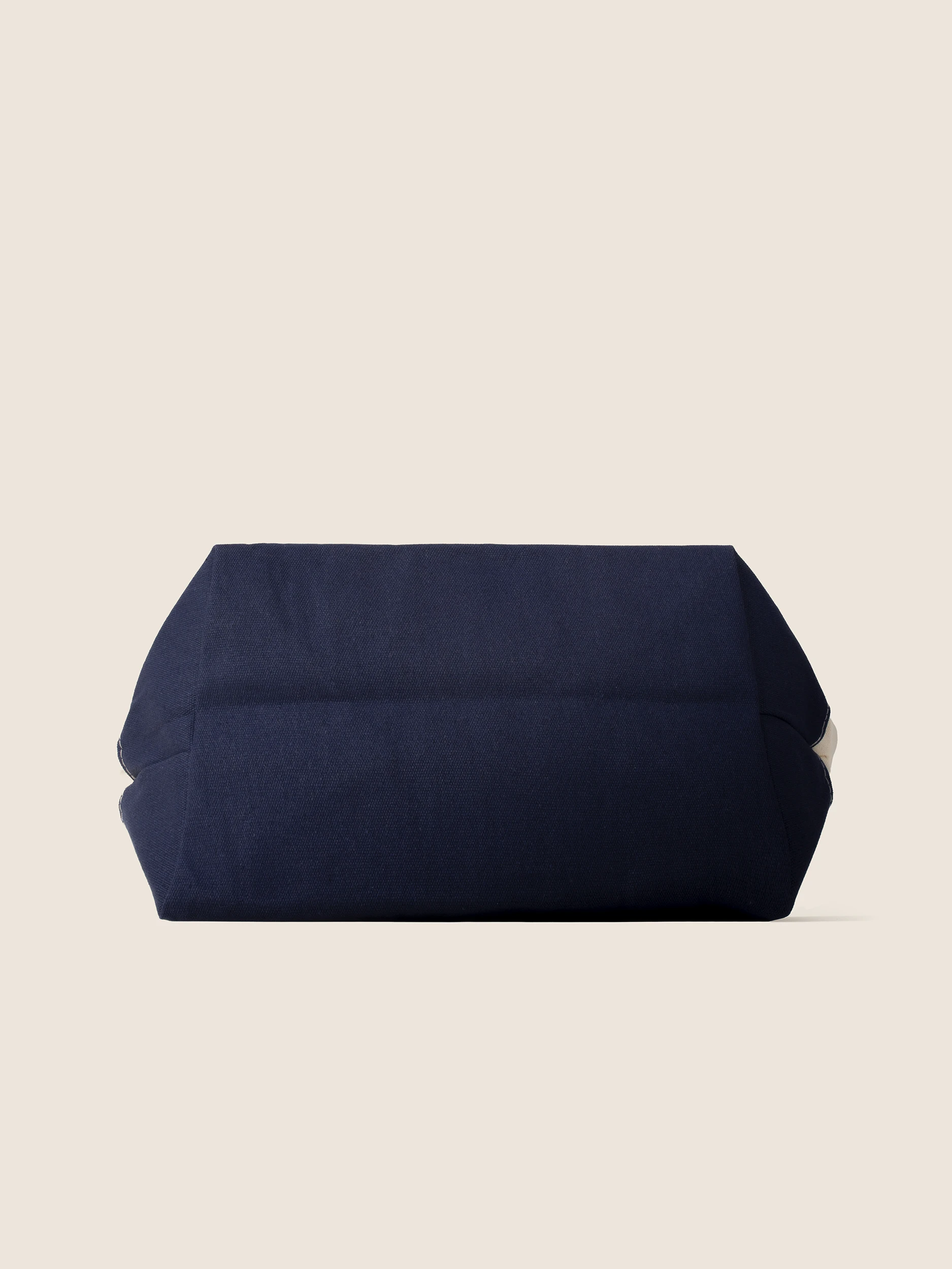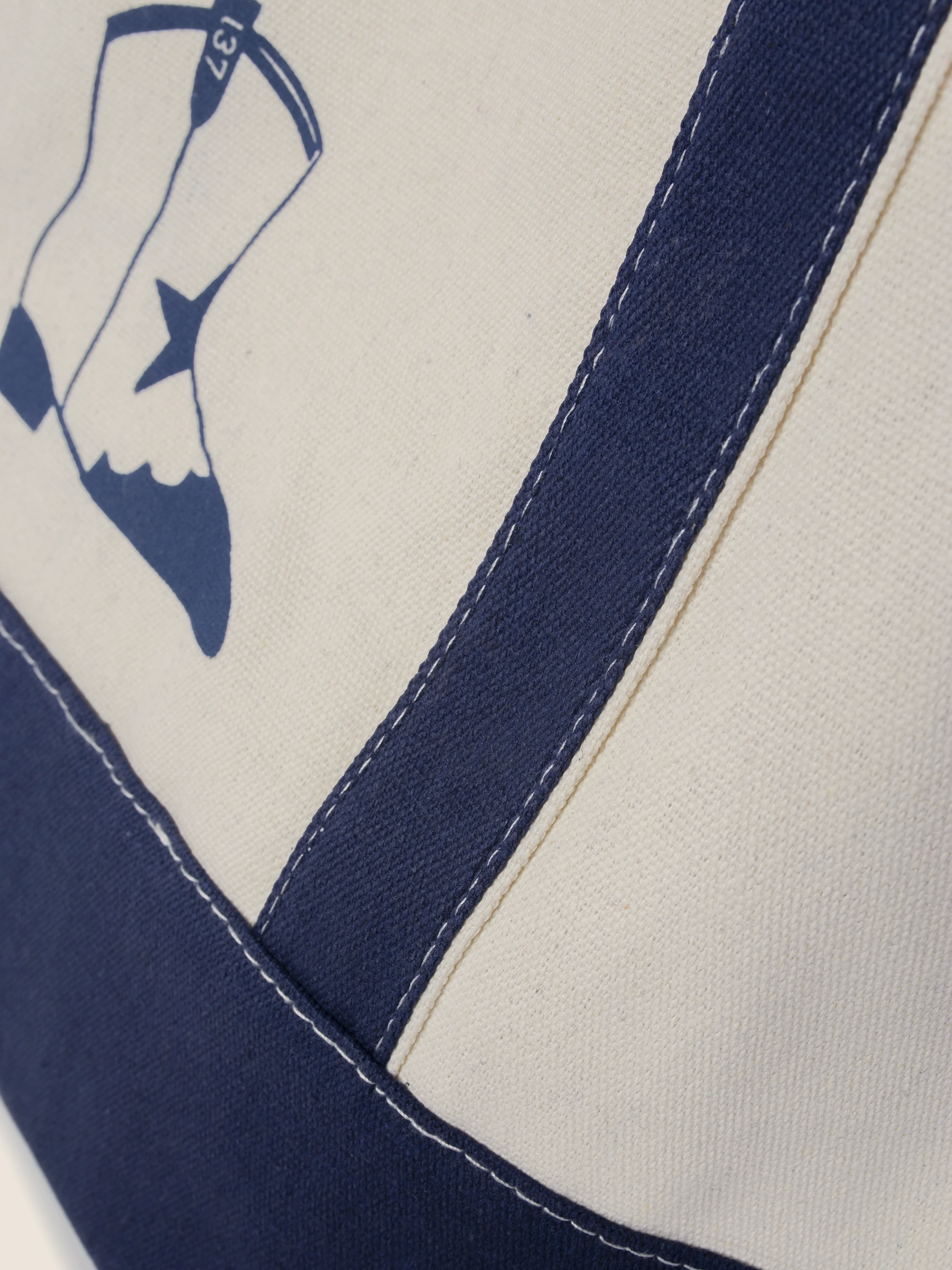 • Kontrastowy Design: Klasyczne połączenie naturalnego kremowego odcienia z głębokim granatem na dnie i uchwytach nadaje torbie marynarskiego, eleganckiego charakteru.