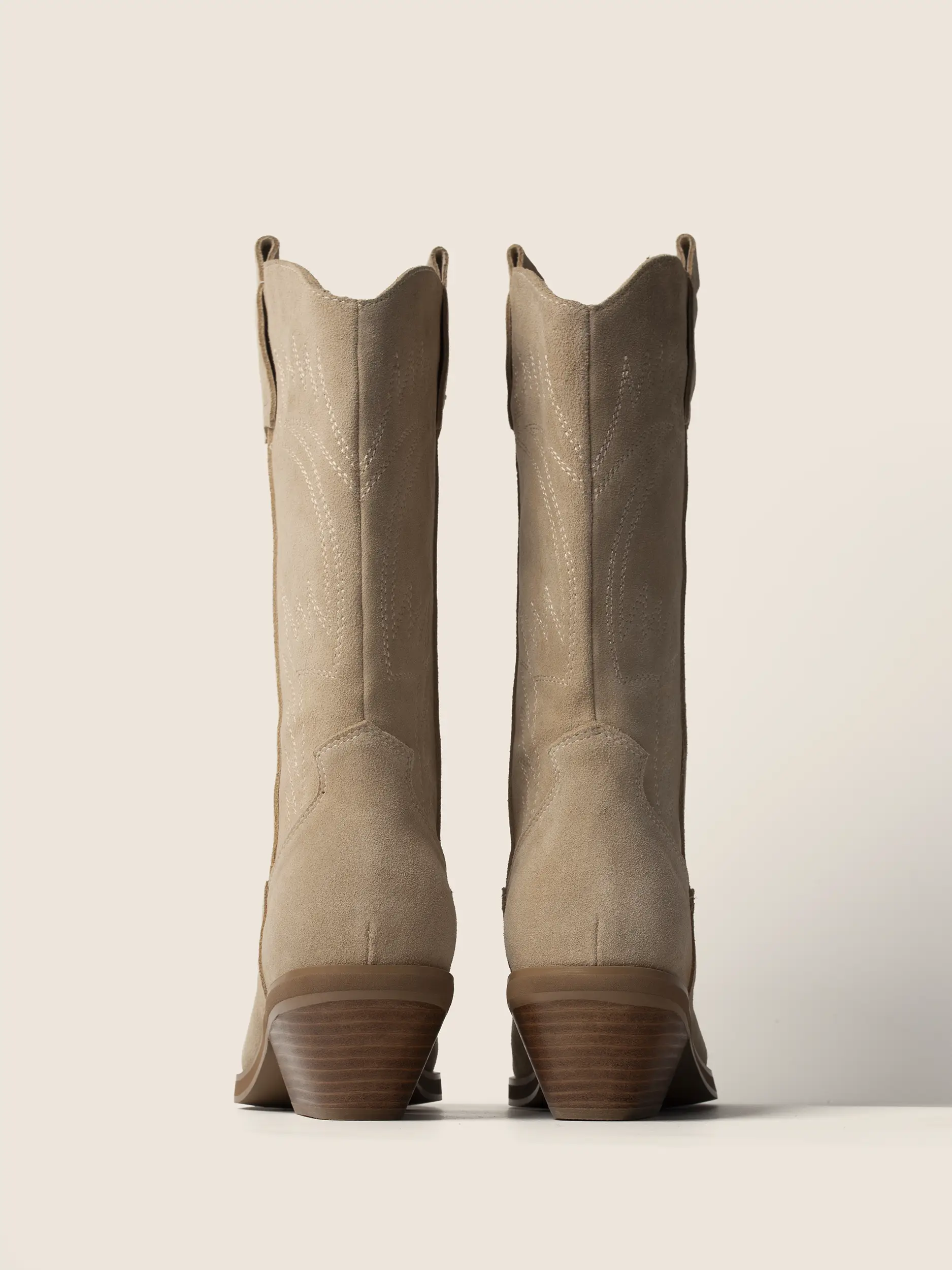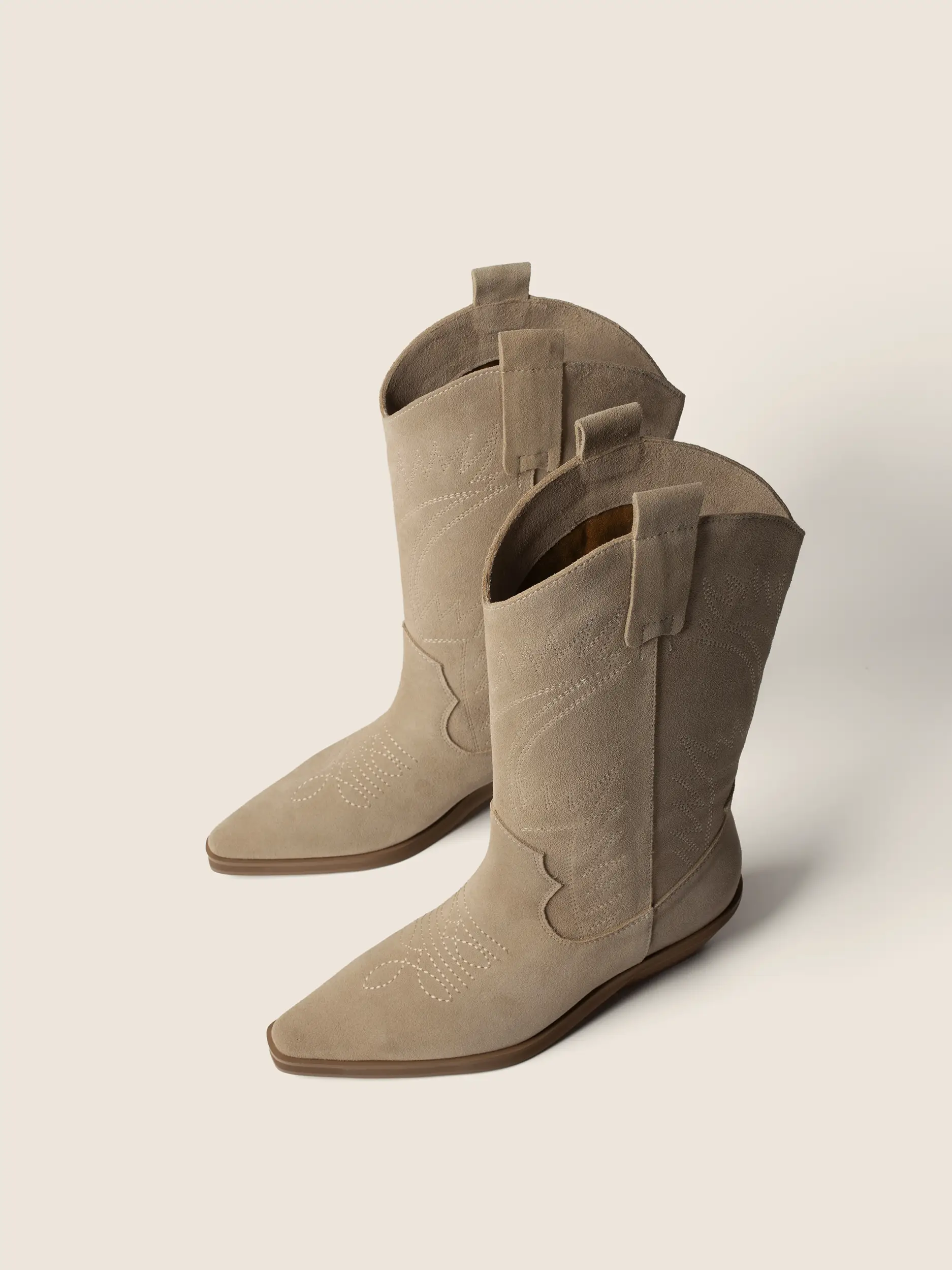 BEŻOWE ZAMSZOWE KOWBOJKI Z OZDOBNYMI HAFTAMI