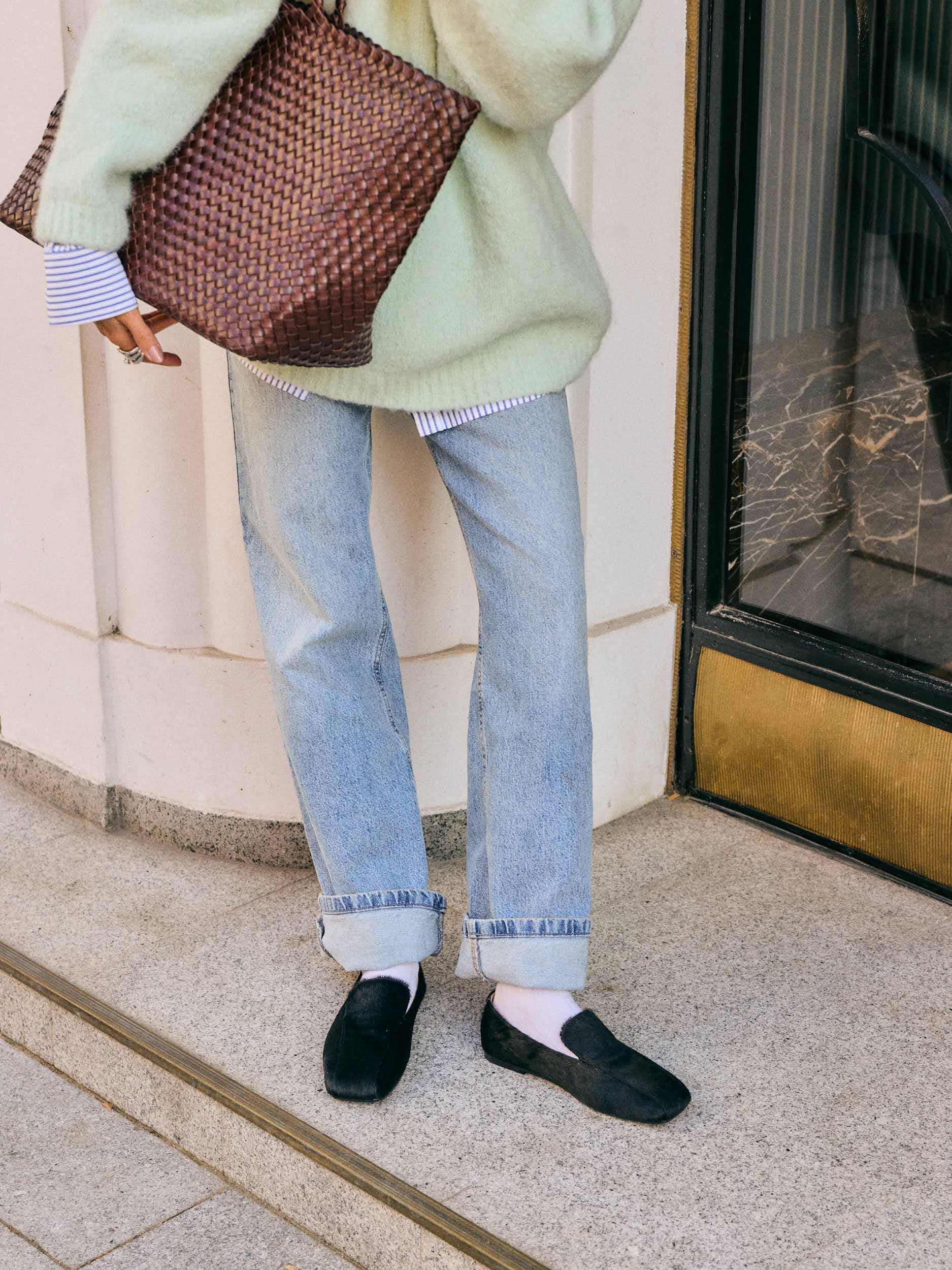 • Minimalistyczna Forma Loafersa: Prosta, surowa linia buta pozwala teksturze materiału grać główną rolę. To idealny model dla fanek estetyki „cichego luksusu”.