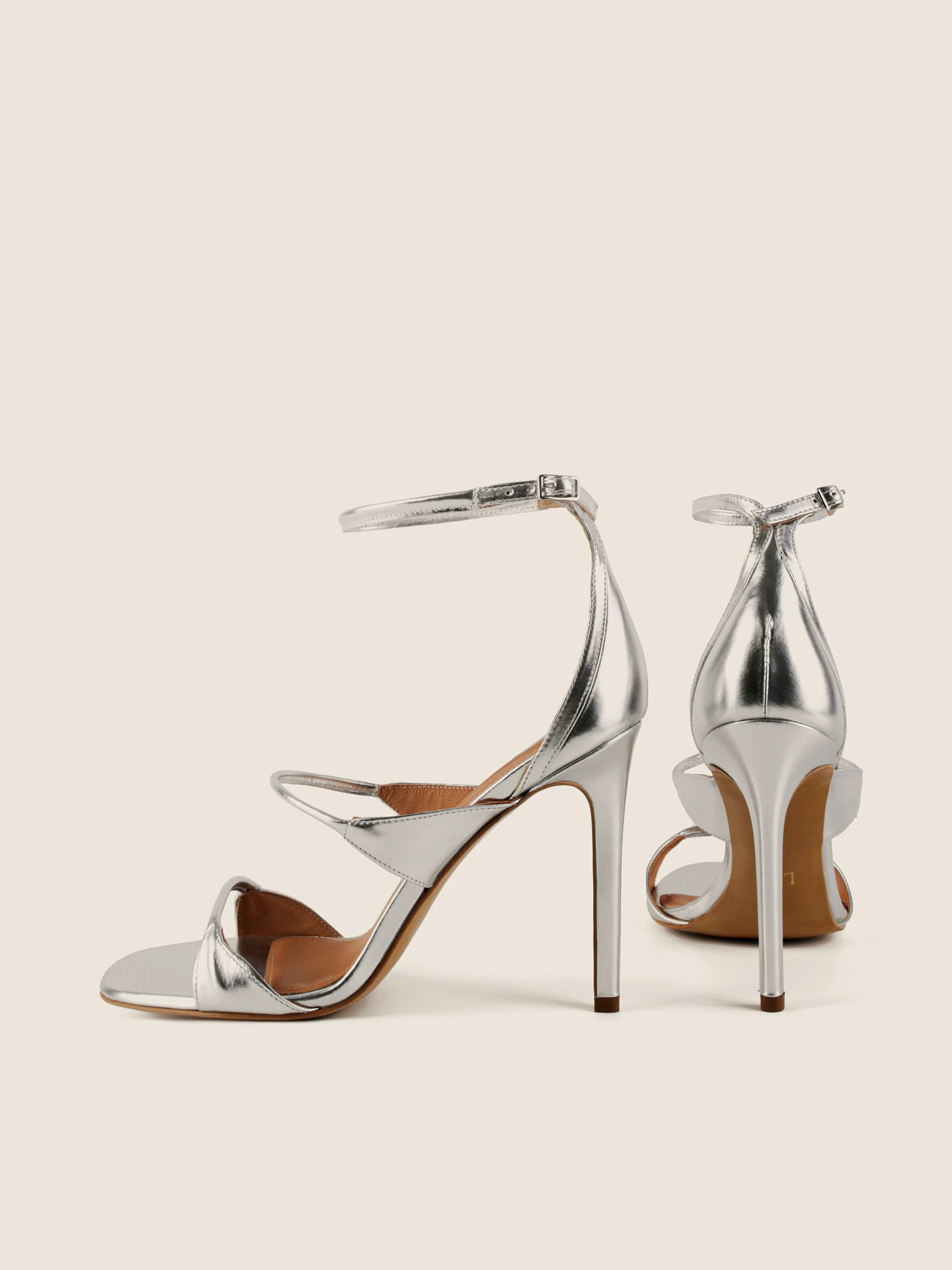SREBRNE SANDAŁY NA WYSOKIM OBCASIE