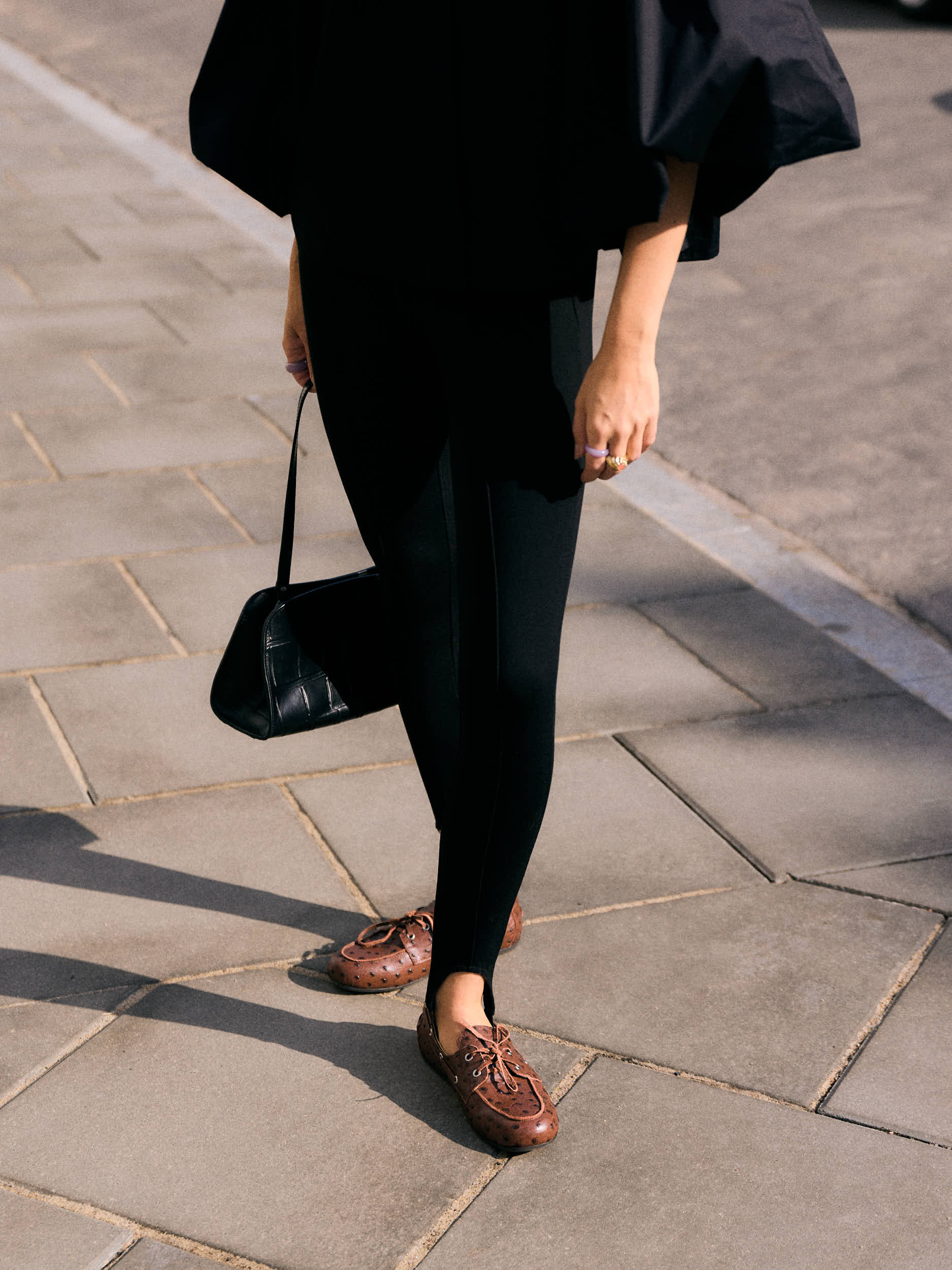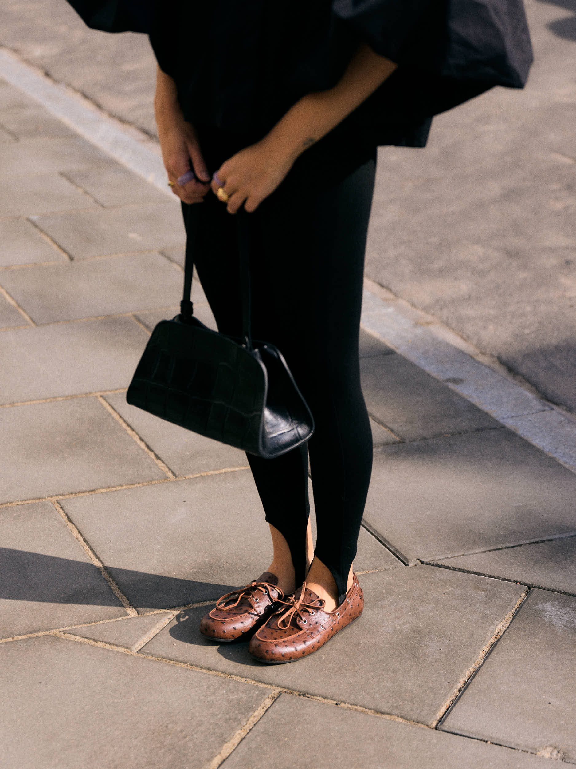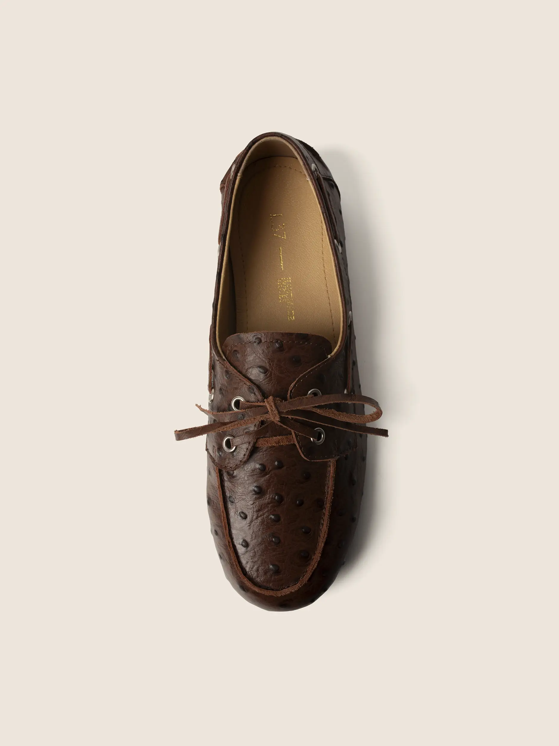 BRĄZOWE SKÓRZANE MOKASYNY Z TŁOCZENIEM WZORU STRUSIA