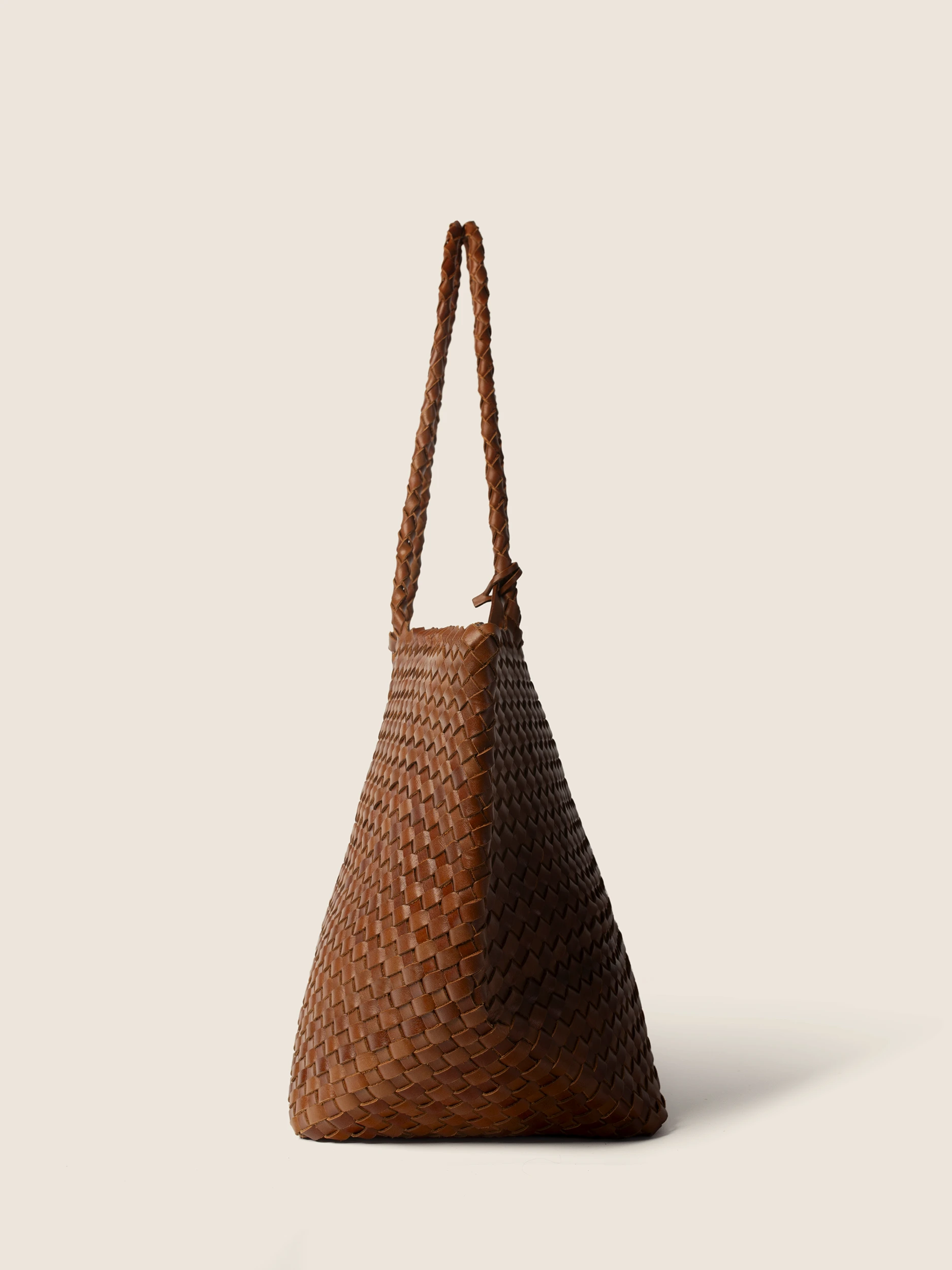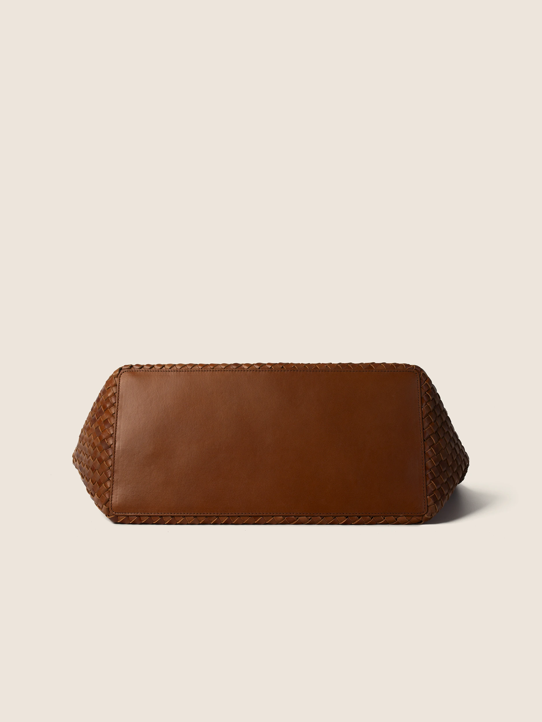 • Kunsztowna plecionka: Wyjątkowy splot skórzanych pasm nadaje torbie lekkości i luksusowego charakteru.