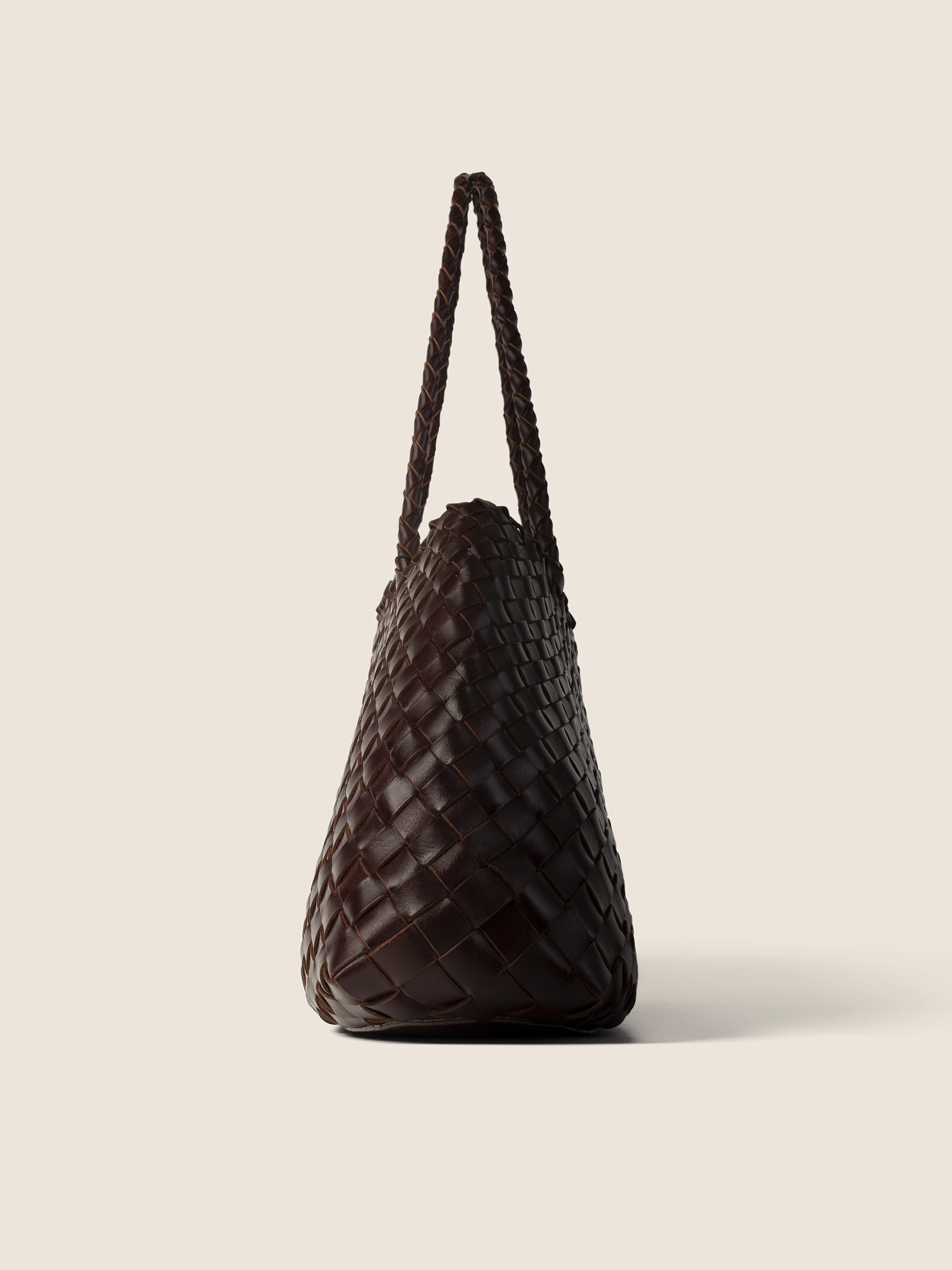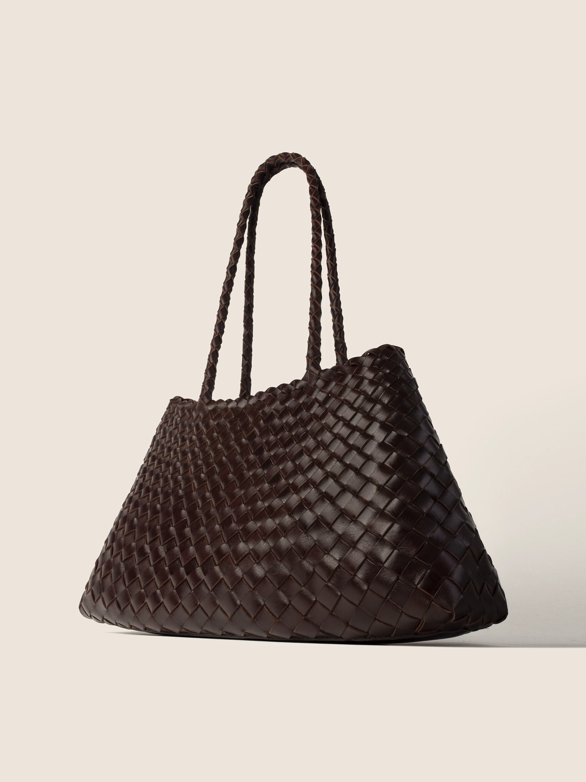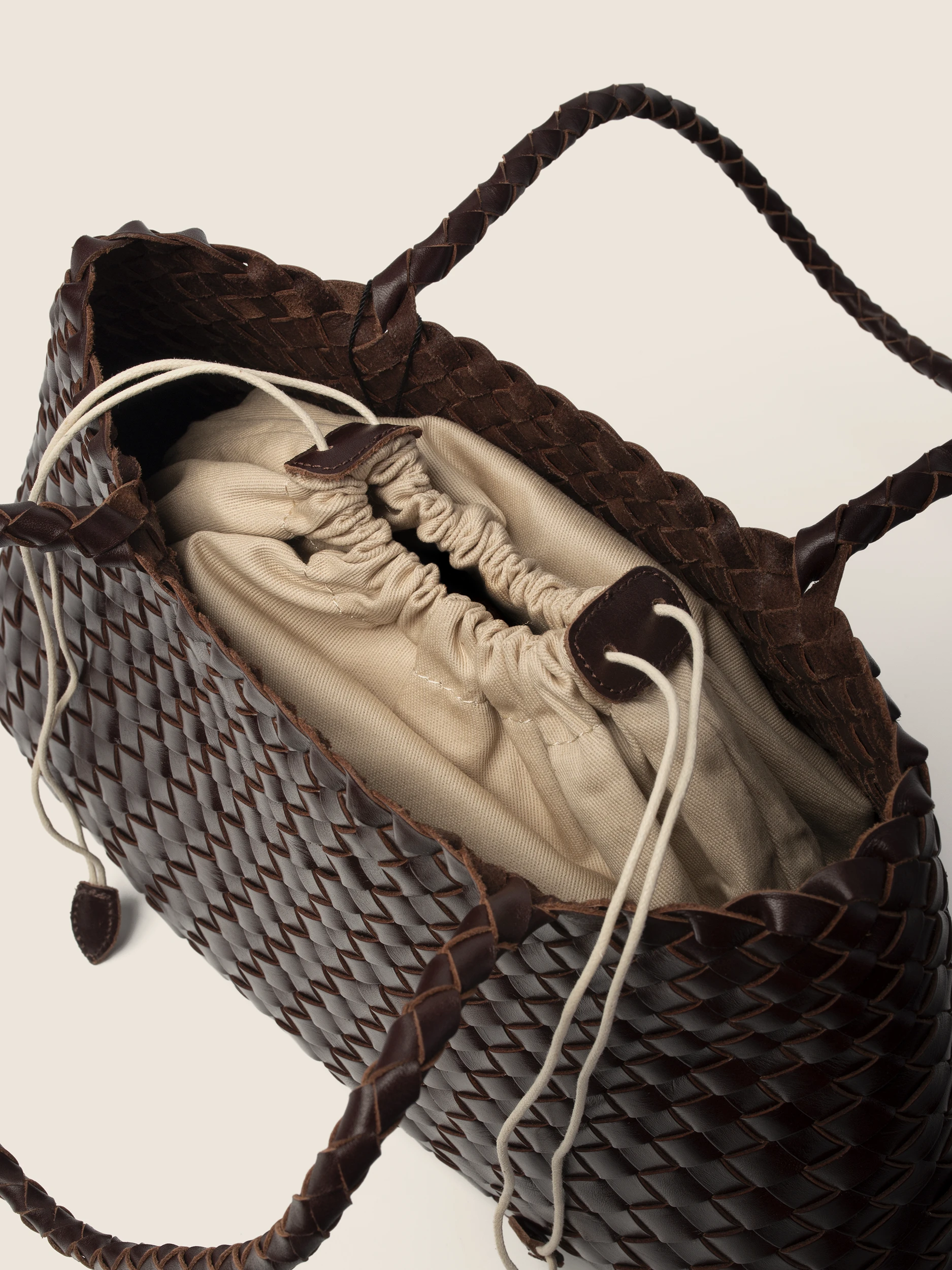 • Ekskluzywna Pleciona Skóra: Cała powierzchnia torby to efekt precyzyjnego, ręcznego przeplatania pasm naturalnej skóry w kolorze gorzkiej czekolady. Ta pracochłonna technika gwarantuje unikalność i niezwykłą trwałość każdego egzemplarza.